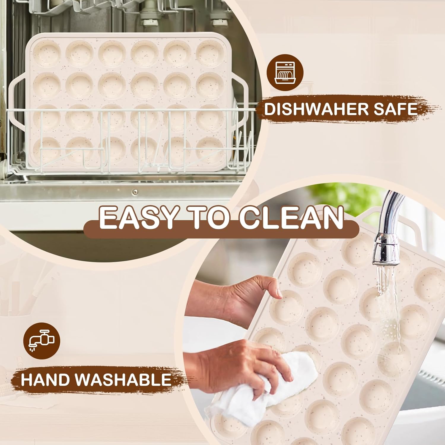 - Nonstick and Easy Removal: The silicone muffin tin is equipped with a non-stick coating that enables effortless release of your baked goods. Make muffins and cupcakes pop out easily. And easy to clean