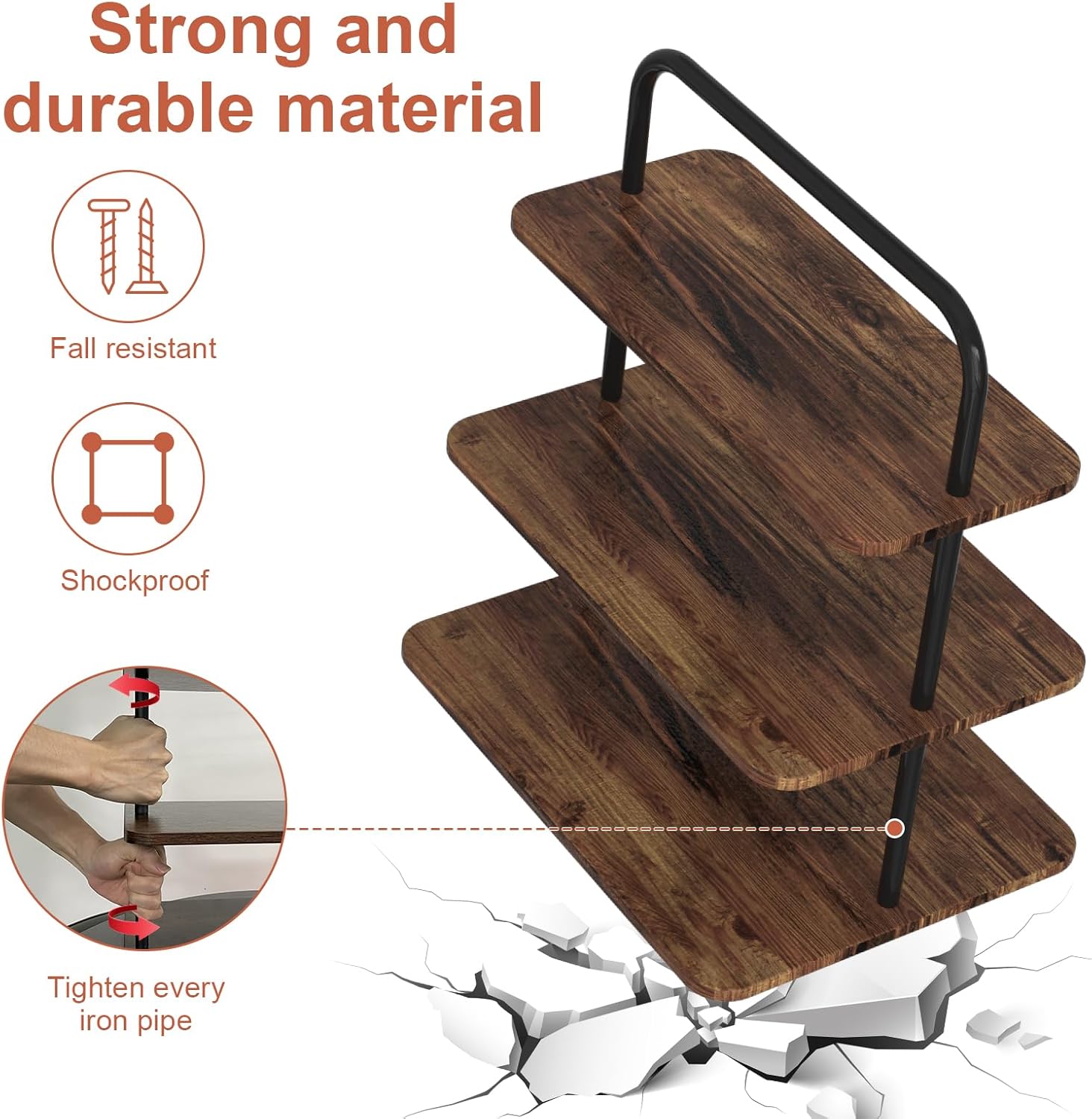 - STRONG & DURABILITY: Made with high-quality metal and engineered wood, can bear a maximum weight of 22lbs, and is not prone to deformation and rust. Compared with acrylic materials, it is more stable, reusable and more environmentally friendly.