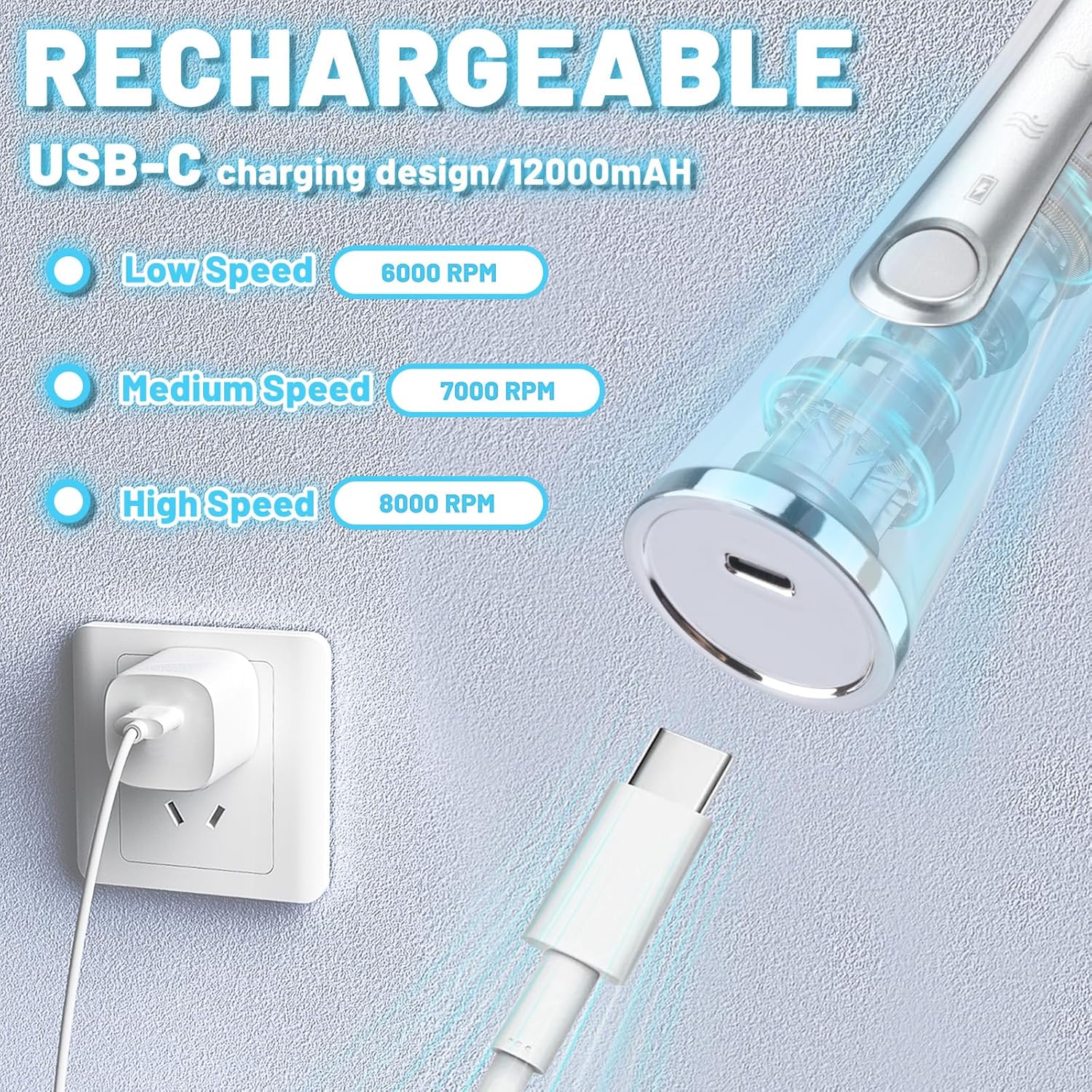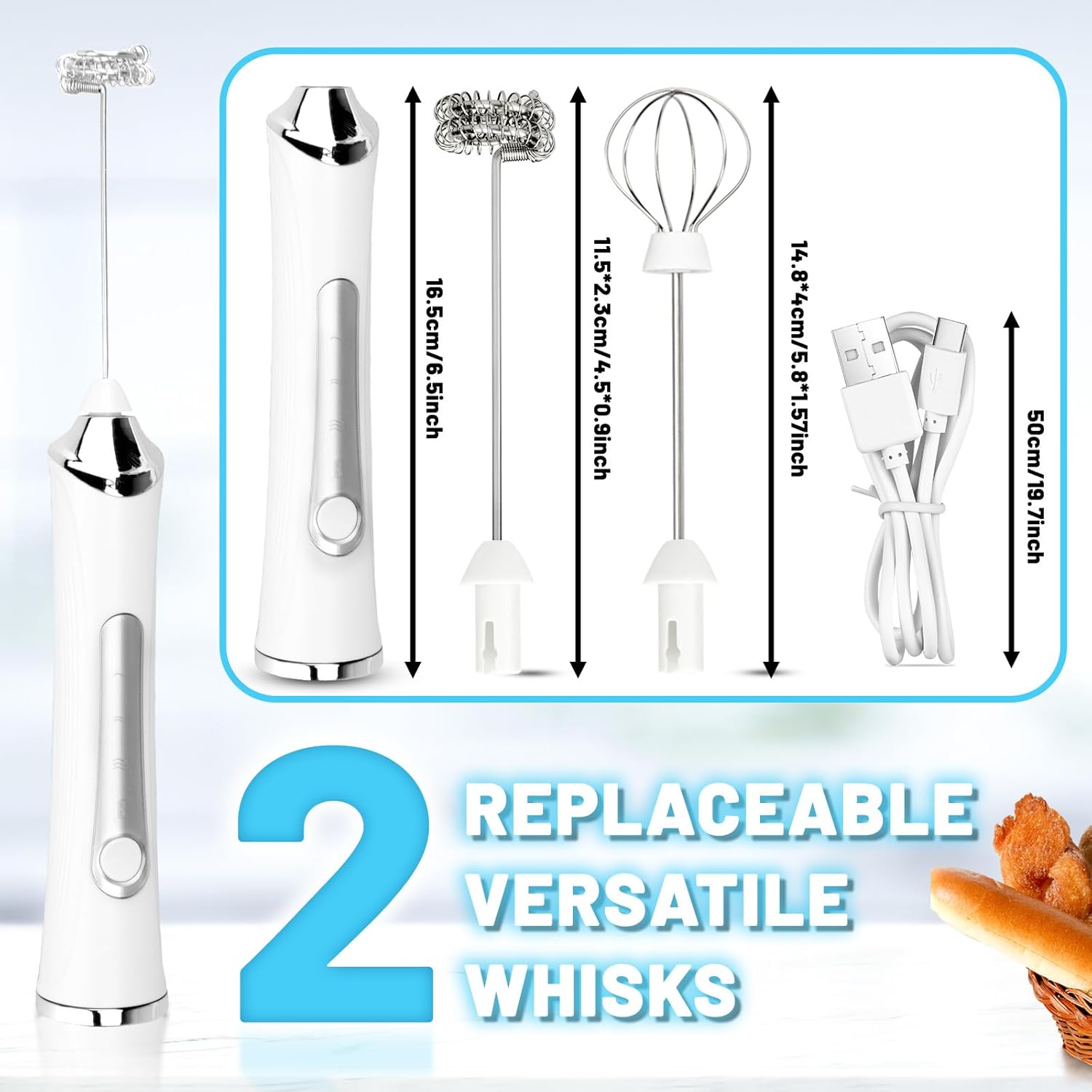 Tonjin Milk Frother with USB-C Rechargeable Wand & 2 Stainless Whisks, Upgraded 3 Speeds Electric Drink Mixer for Coffee, Egg, Matcha