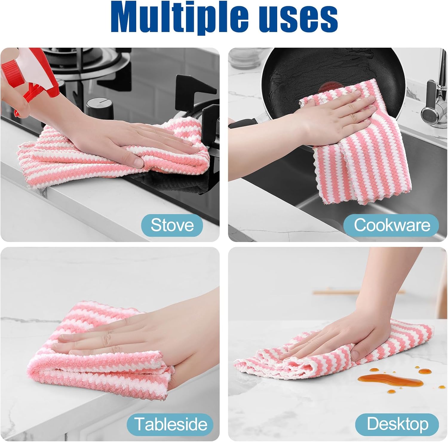 - Super Soft and Absorbent: Experience the luxurious softness of our dish towels. They are crafted with high-quality materials which feels soft and won't scratch your hands or any surfaces. Strong water absorption, easily absorb liquid and overflow, make the surface clean and dry.