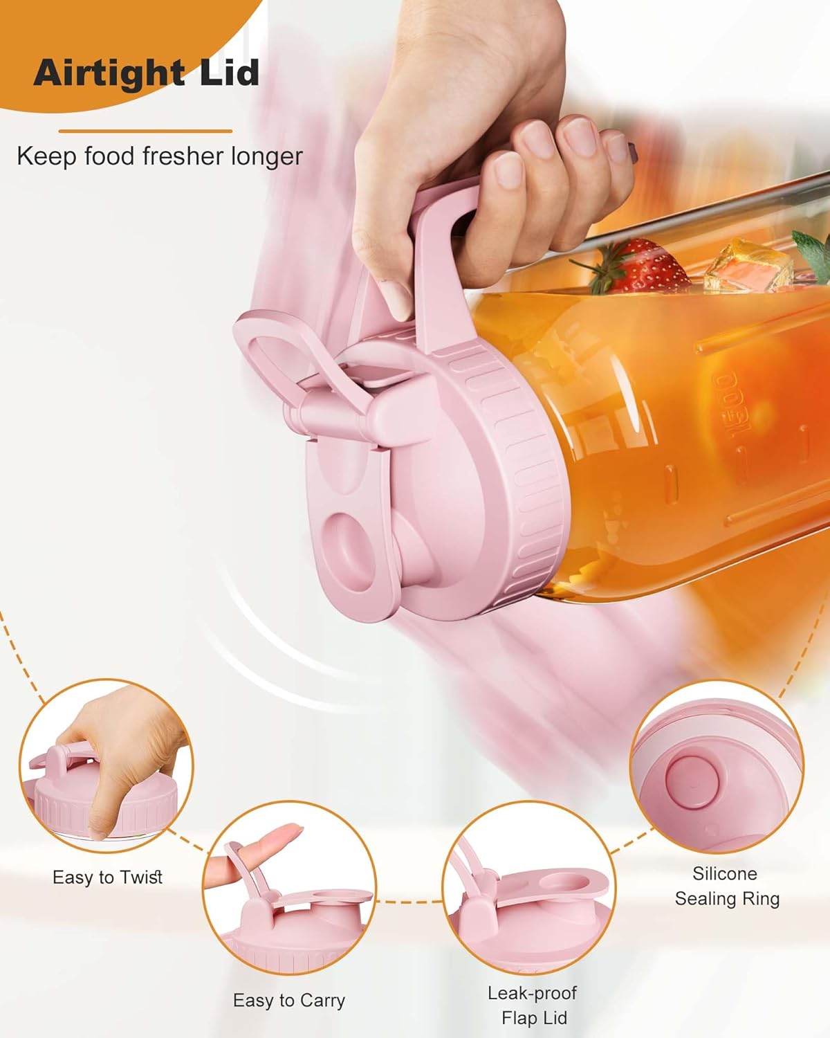 - Keep Your Drinks Fresh and Flavorful -64oz glass pitcher comes with an airtight flip with silicone seal that seals in the flavor and freshness of your favorite beverages while also being leak-proof. It's easy and convenient to open, pour and close, making it perfect for store your drinking