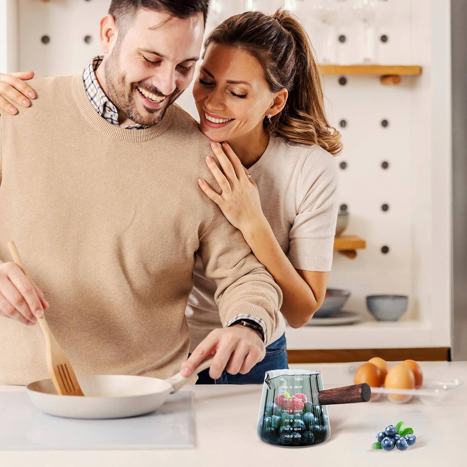 - With Round Wooden Handles: The Spouts Measuring Cup is featuring an anti-scald wooden handle that is heat insulation and more comfortable to use.