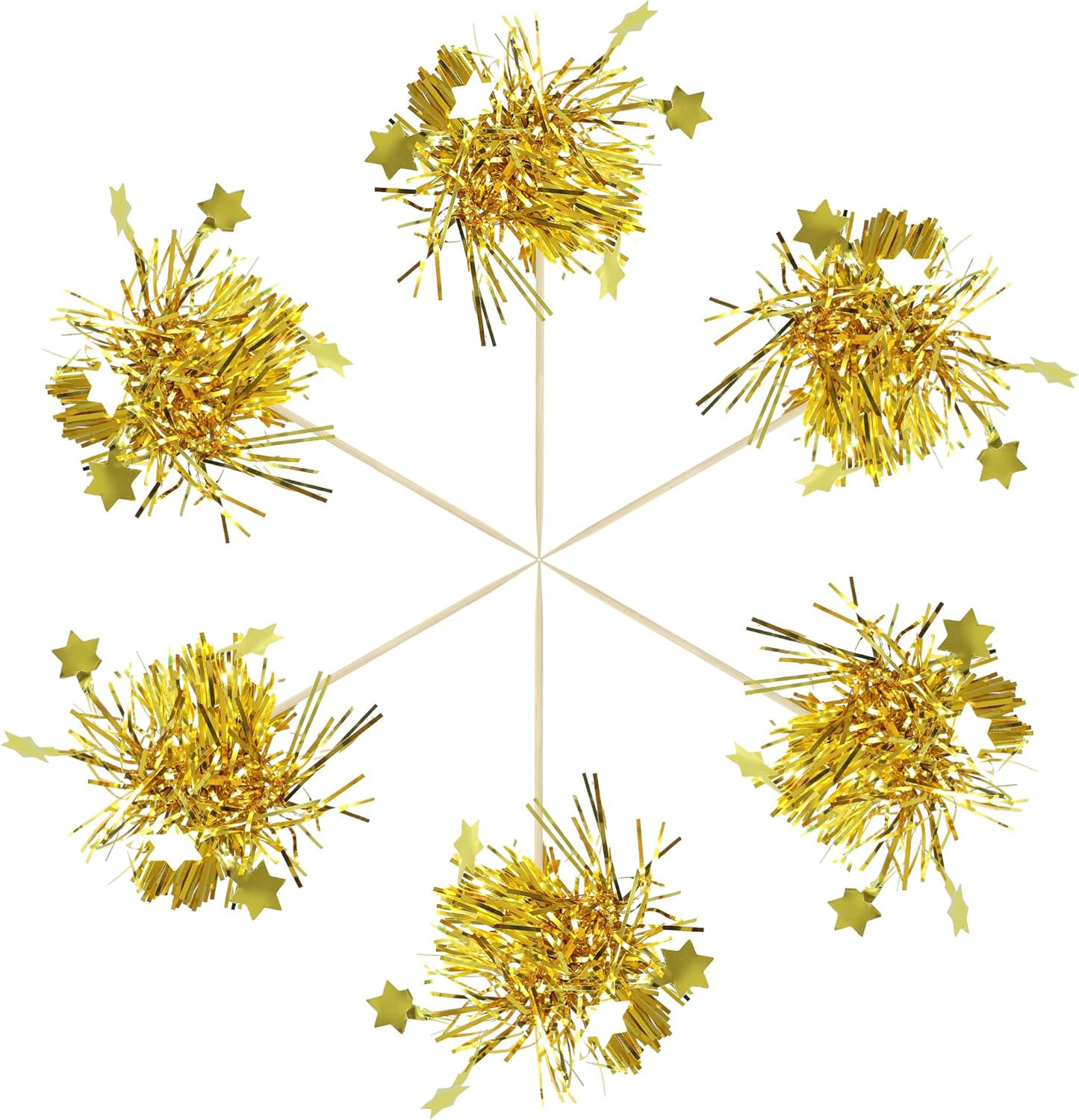 Gyufise 30Pcs Star Foil Firework Cupcake Toppers Sparkle Tinsel Cake Toppers Tinsel Drink Cake Decoration Cocktail Picks for Birthday Wedding Graduation Party Supplies Gold