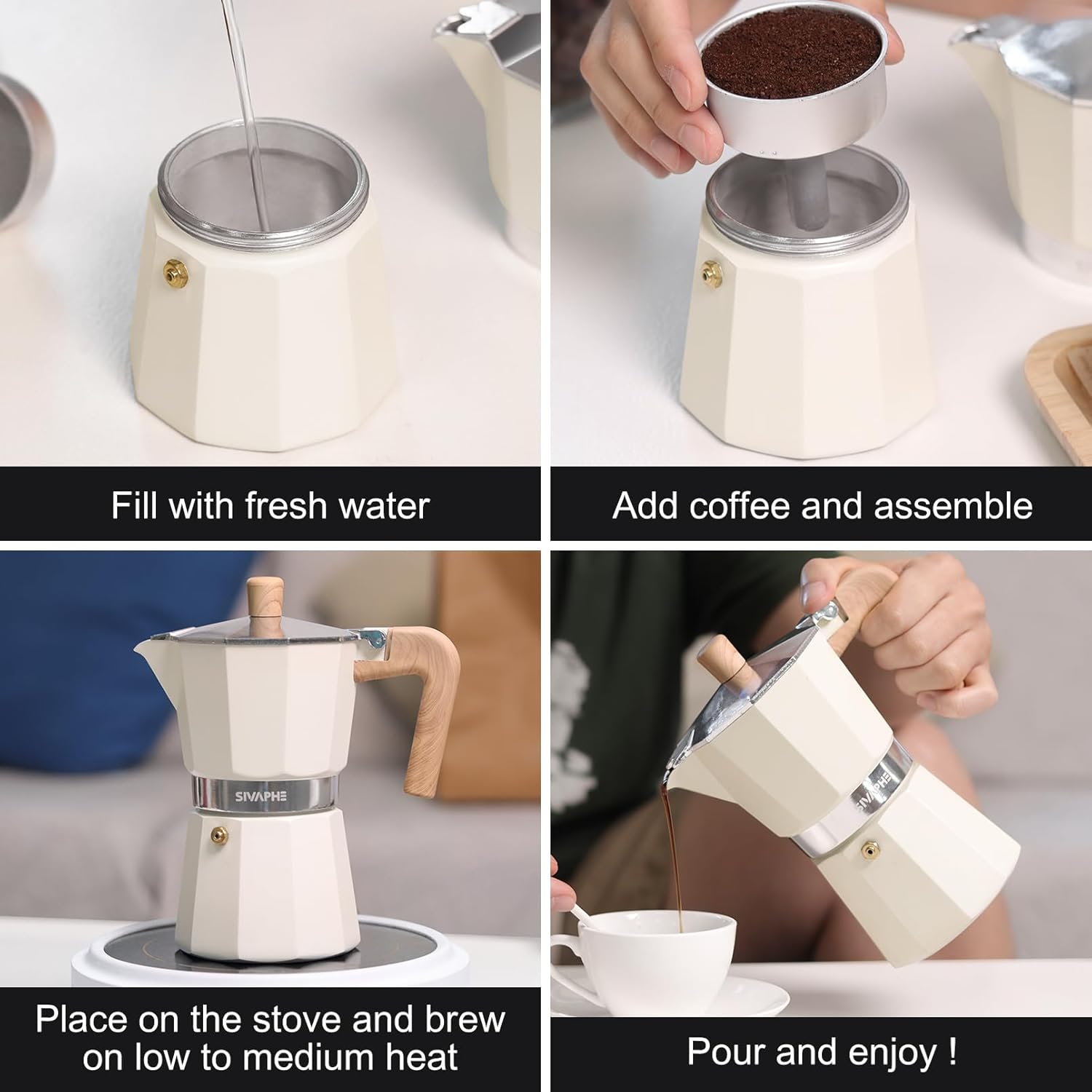 - PORTABLE: Stovetop Italian and Cuban Café Brewer for Home kitchen and Camping, drinking coffee easily and Save money.