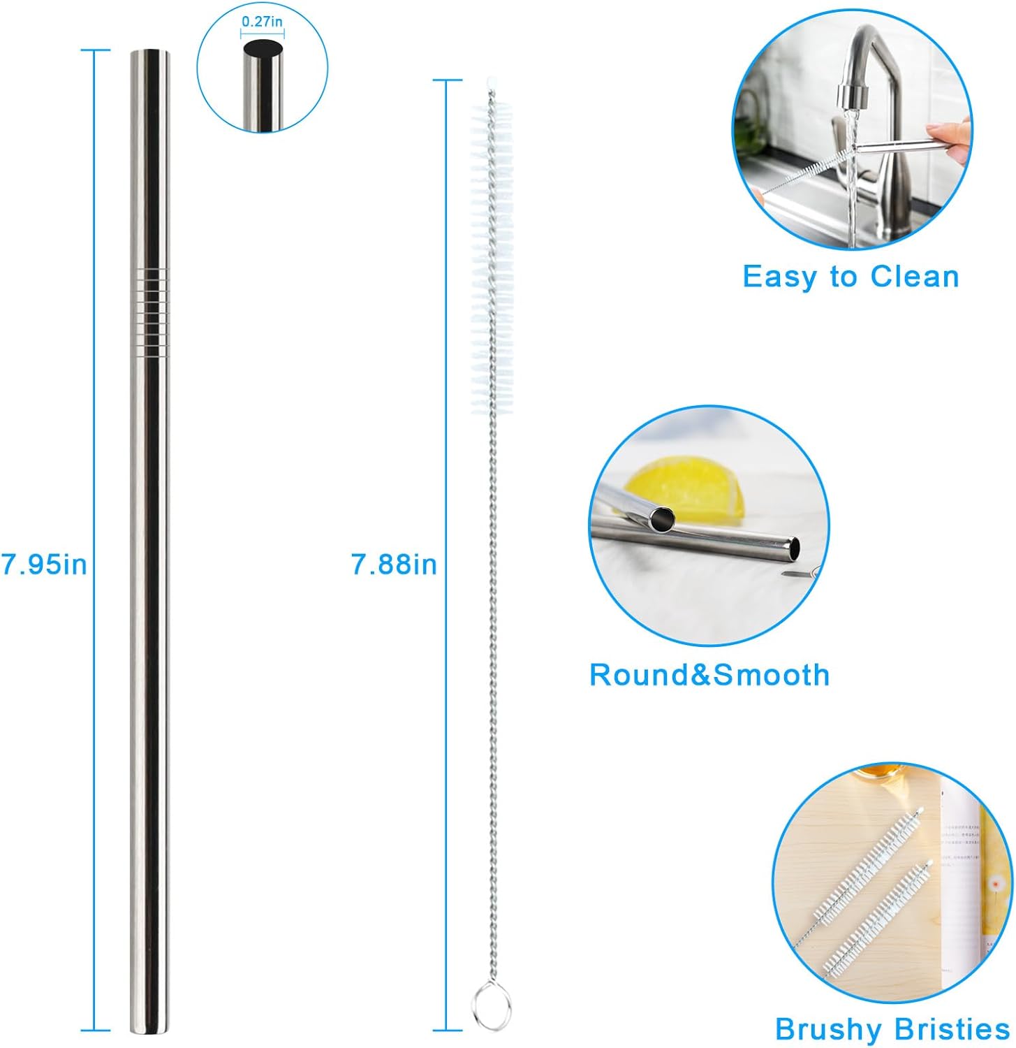 - Resuable Metal Straws and Super Durable: Made of hight quality 18/8 stainless steel, BPA free, safe and healthy, not easy to rust and deform, reusable, reduces reliance on disposable plastic straws and helps protect the environment