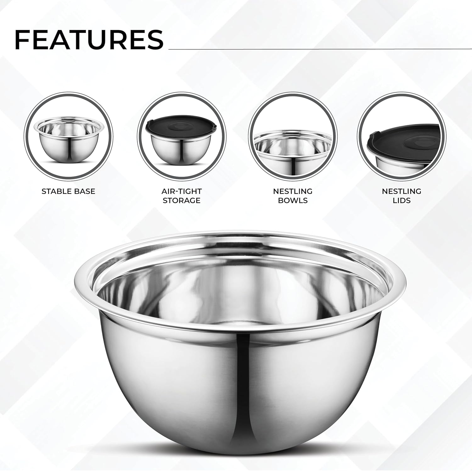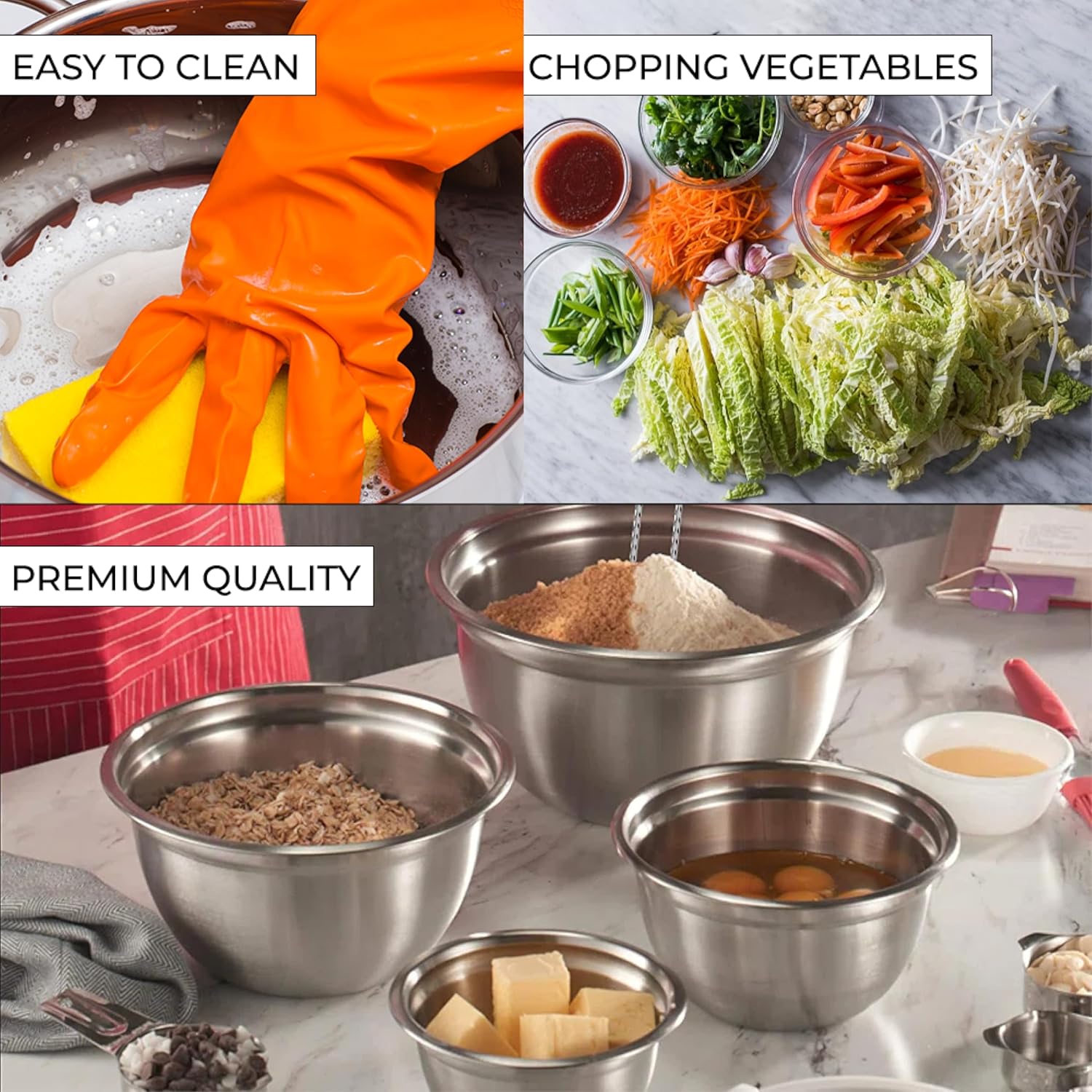 - ✅ Stainless Steel Mixing Bowls with Nestable Design for Easy Storage