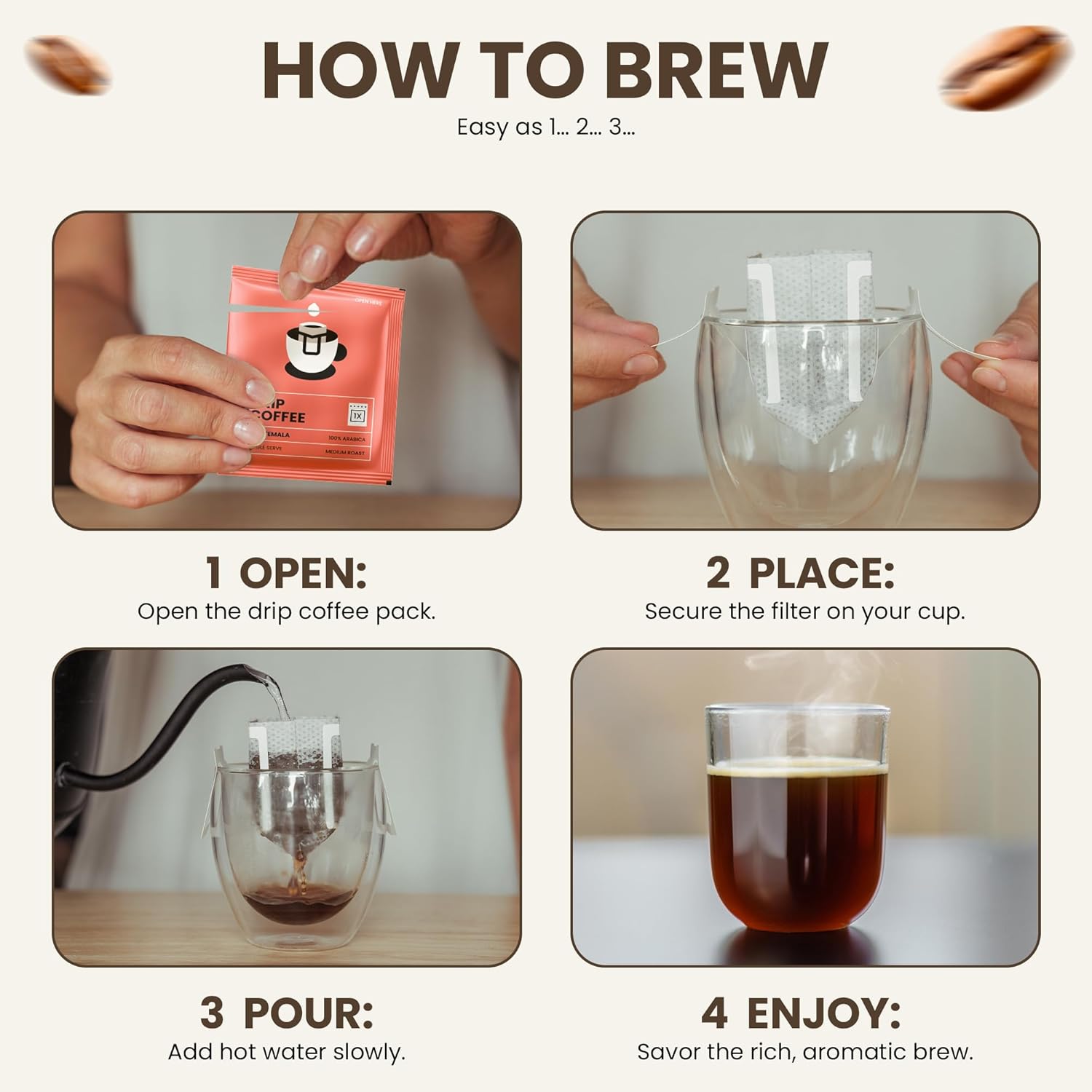 - Convenient Brewing Anywhere: Pocket-sized and travel-friendly design; just add hot water for fresh, aromatic coffee at home, office, or outdoors.