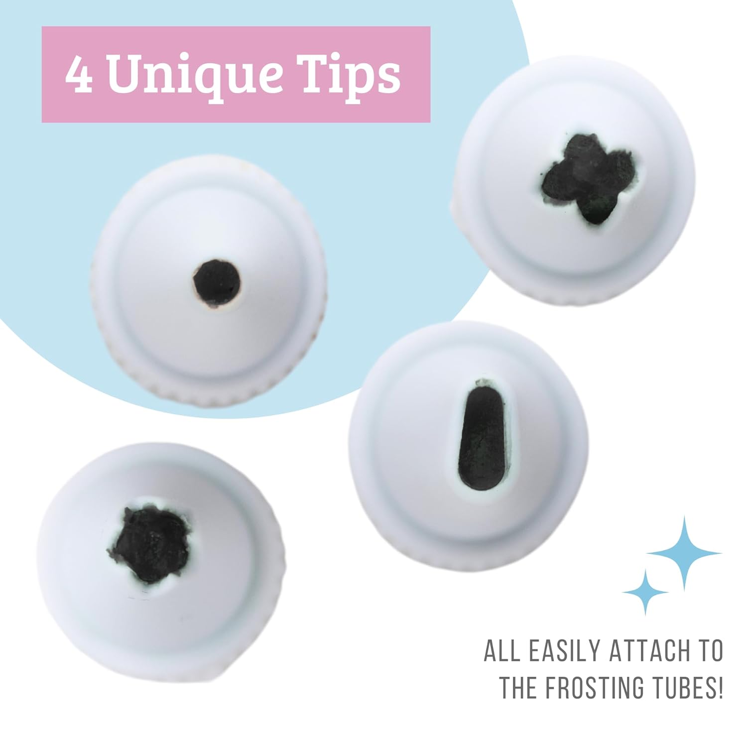 - Nozzles: This set also includes 4 different nozzles for different application types
