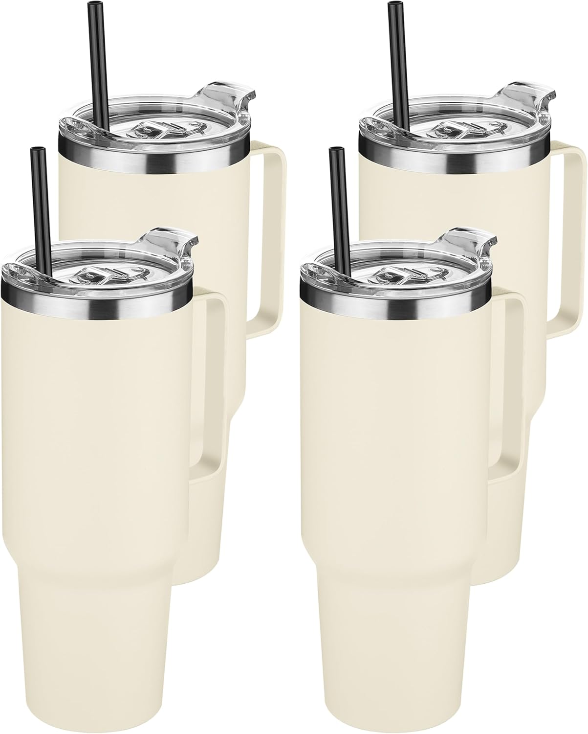 HASLE OUTFITTERS 40 oz Stainless Steel Tumbler with Handle, Vacuum Insulated Tumblers Bulk, Reusable Double Wall Travel Coffee Mug, Durable Powder Coated Water Bottle(Beige, 4)