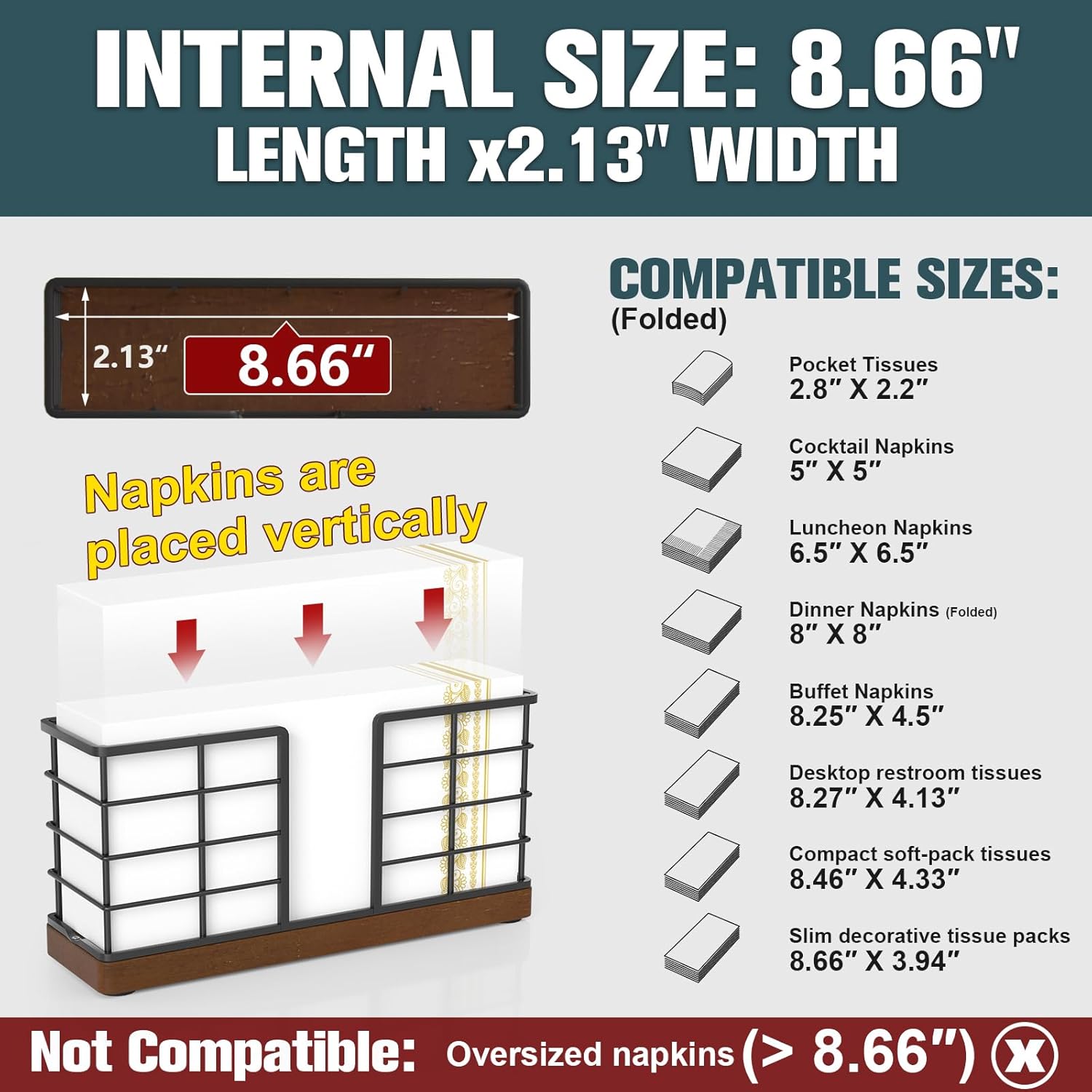 - Upright and Slim Style: Most paper napkin holders are flat, countertop types, which take up room. This takes up less space, so if you don't have much counter space, this is a perfect option