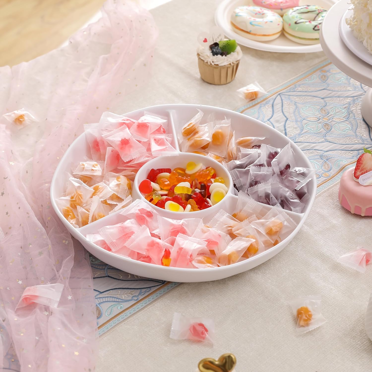 - Divided Serving Tray - Display food tray, Snack Platter Organizer for Fruits, Candy, Nuts, Snacks - Ideal for Party, Travel & Picnics