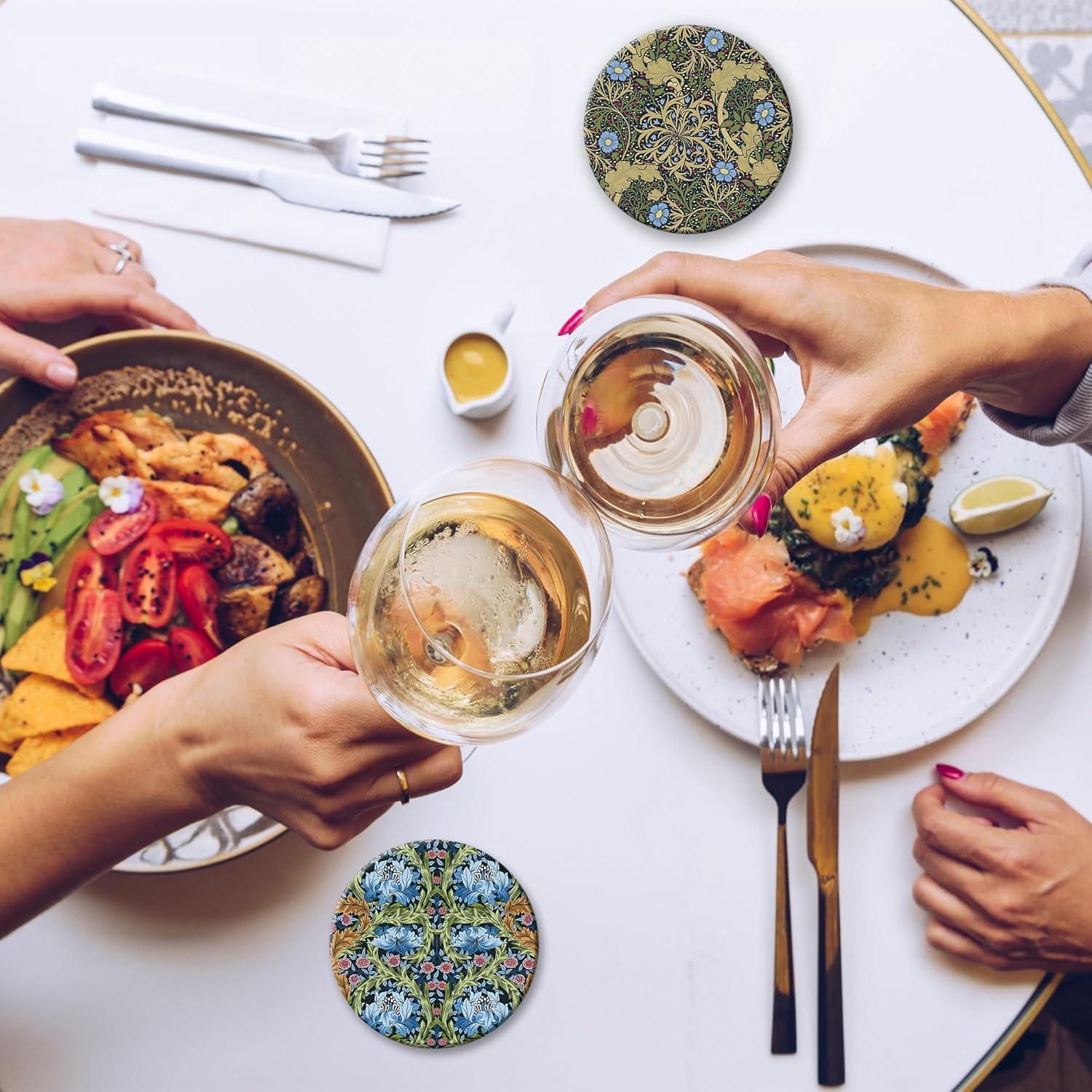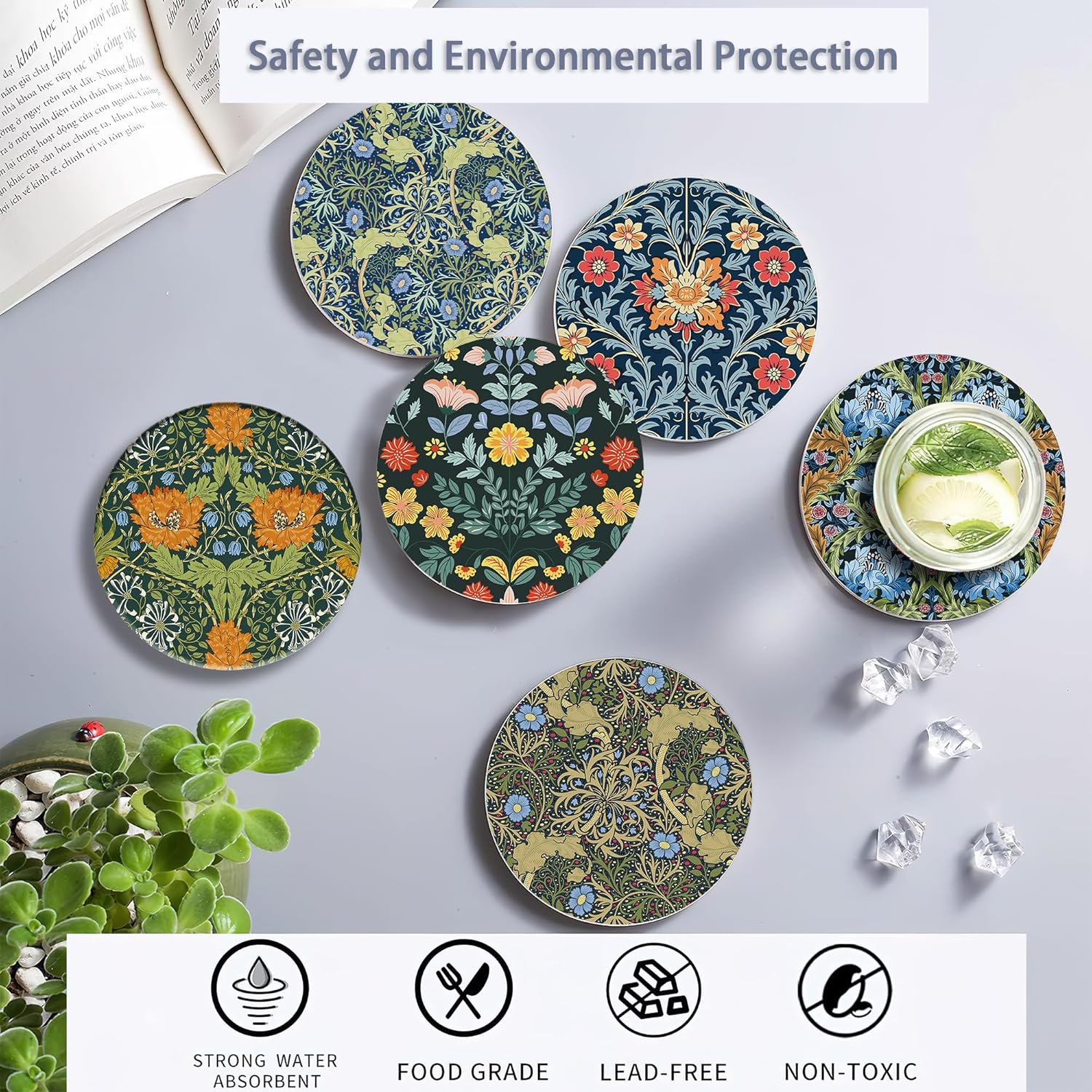 Coaster for Drinks Set of 6, Vintage Flower Absorbing Round Ceramic Stone Coaster with Cork Base,Tabletop Protection Mat for Mugs and Cups,Coffee Table Wine Glass Home Bar 4 Inch