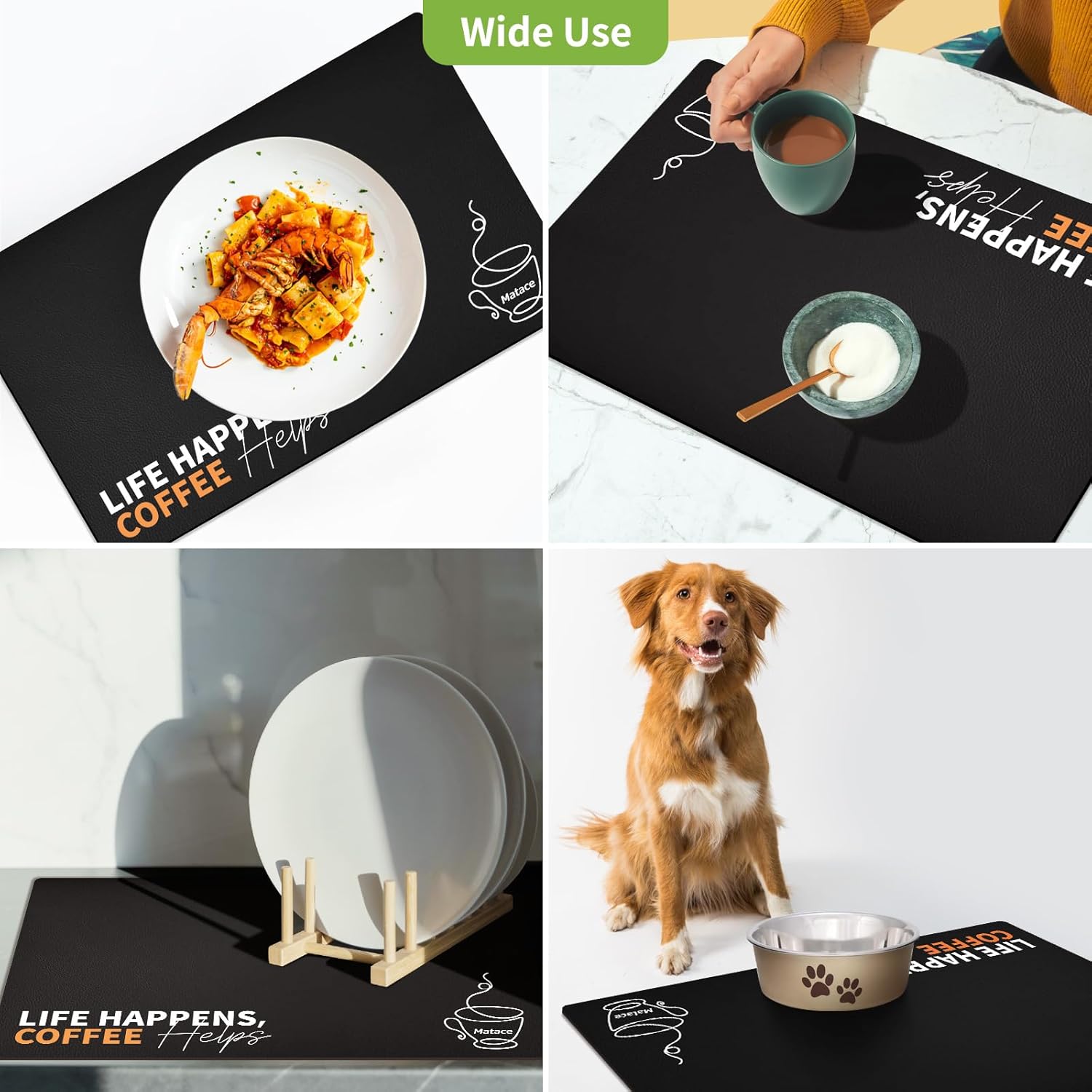 - 【Effortless Maintenance】 Designed for busy households, this mat is not only easy to wipe clean but also rinseable, machine washable, and even dishwasher safe. Whether you use it as a drying mat for dishes or a coffee bar mat, it’s built for hassle-free upkeep and long-lasting durability.