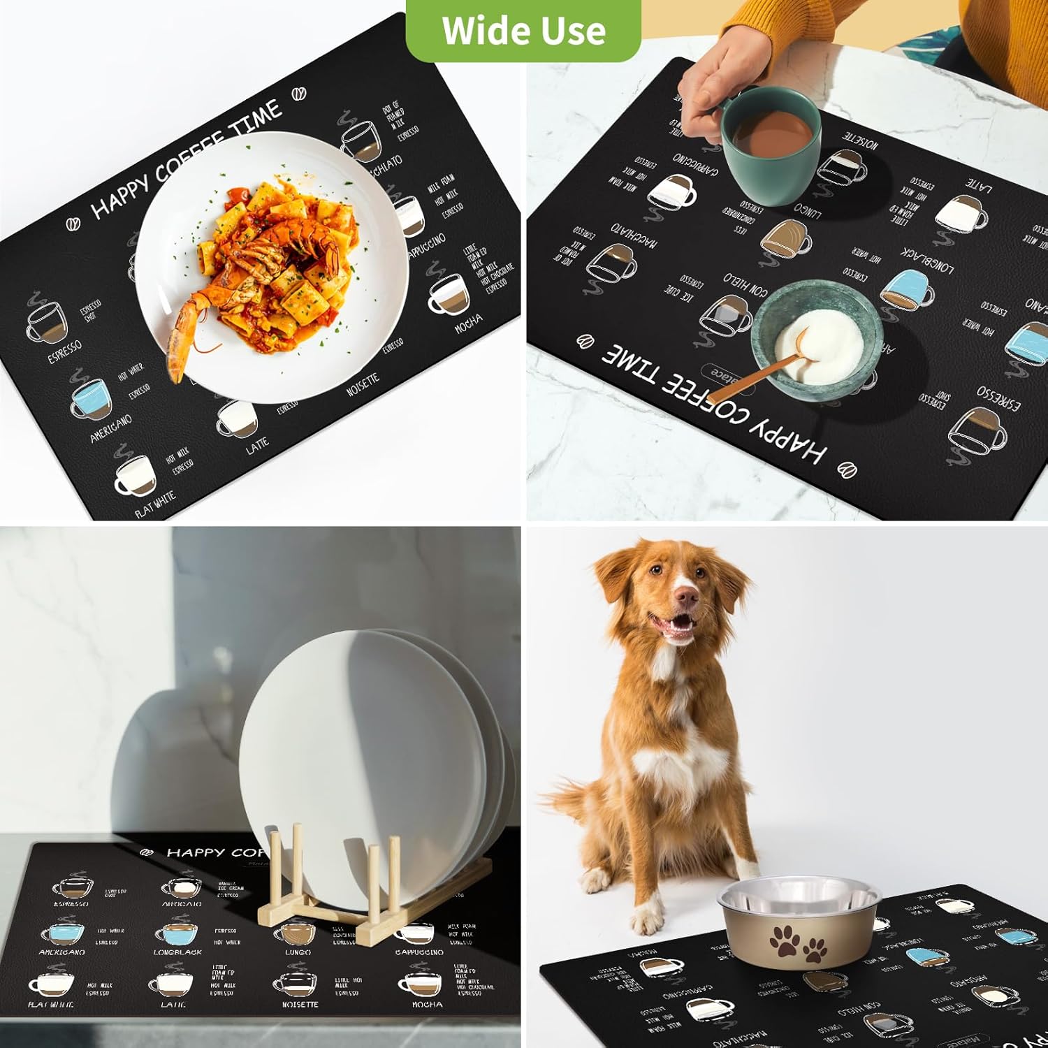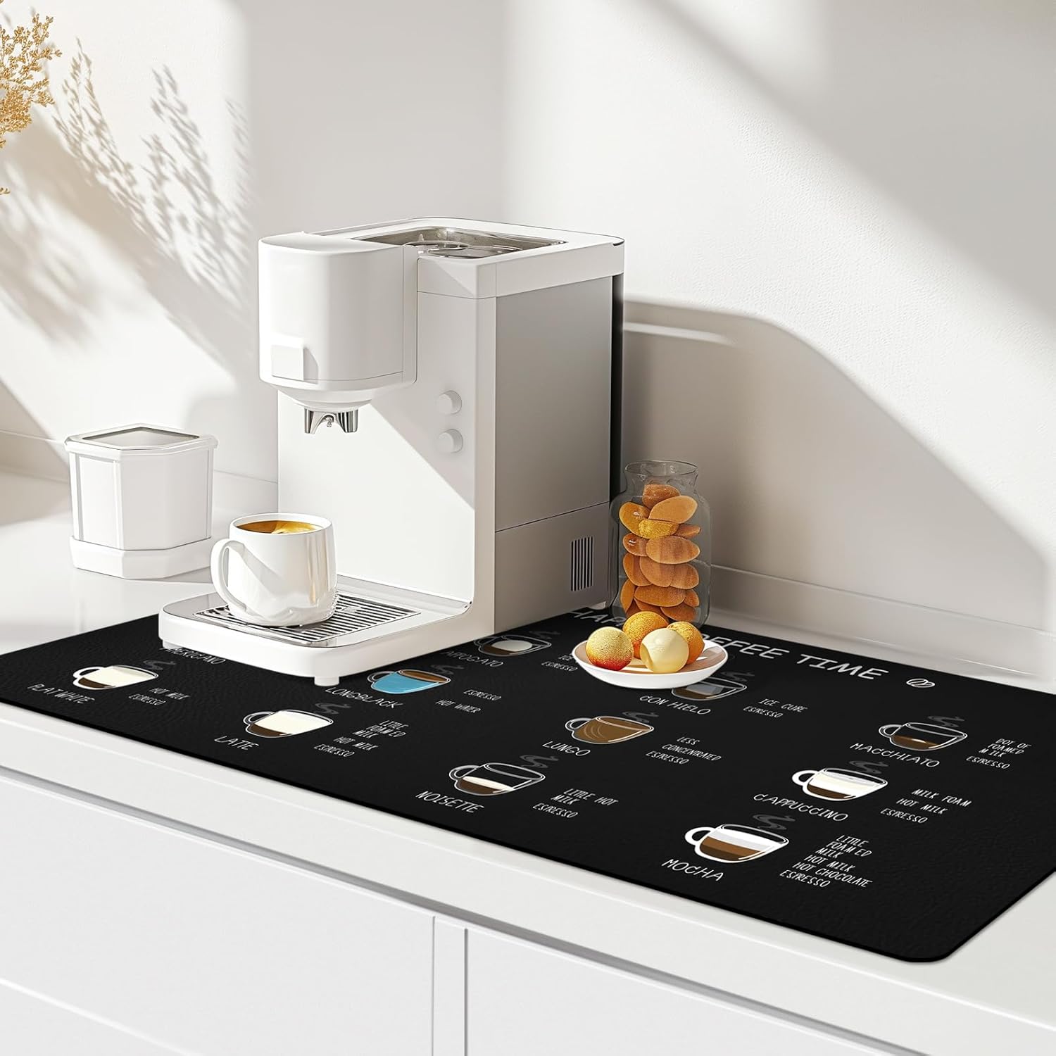- 【Effortless Maintenance】 Designed for busy households, this mat is not only easy to wipe clean but also rinseable, machine washable, and even dishwasher safe. Whether you use it as a drying mat for dishes or a coffee bar mat, it’s built for hassle-free upkeep and long-lasting durability.