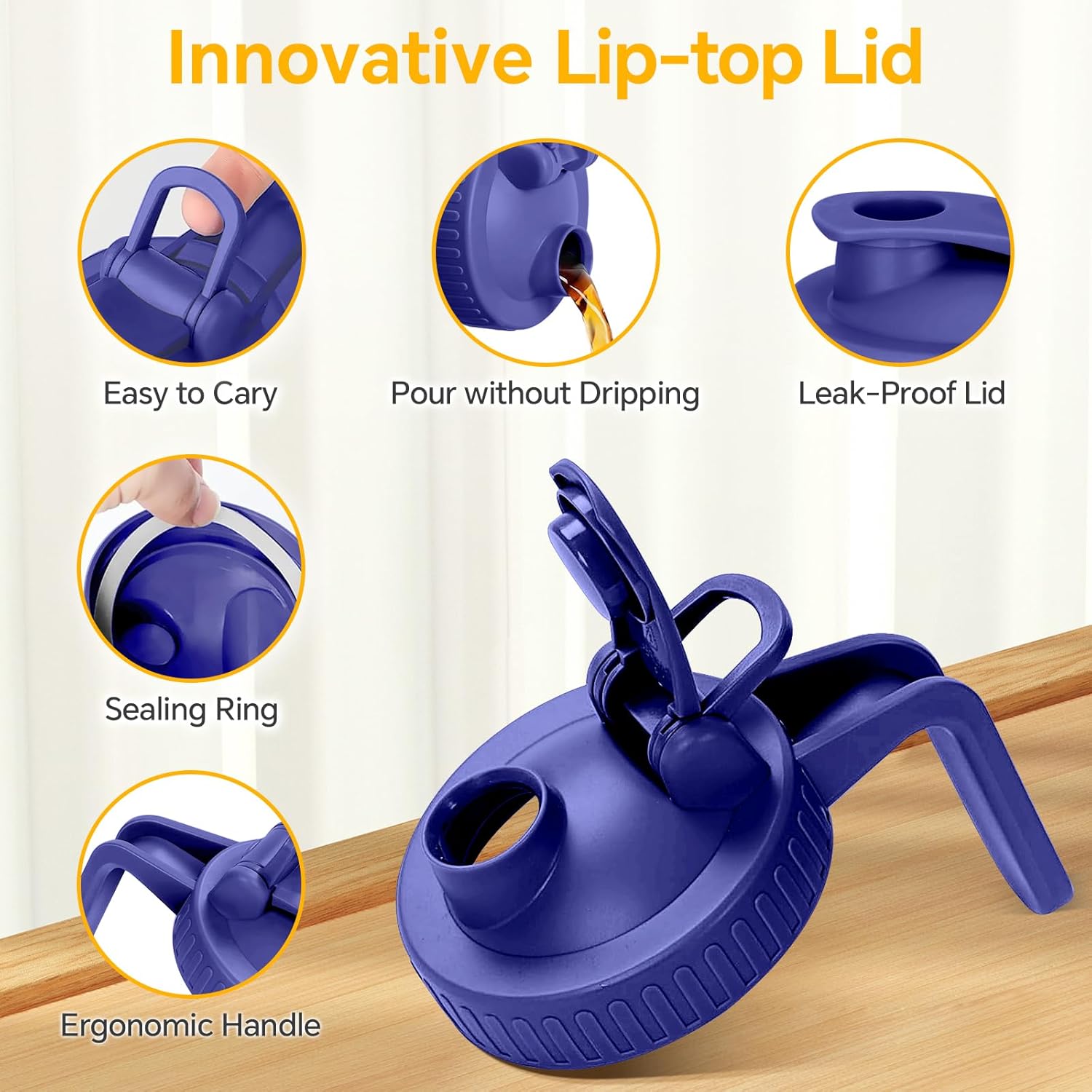 Mason Jar Pitcher, 64 OZ Glass Pitcher with Lid Double Leak-proof with Handle Water Jug Wide Mouth Breast Milk Pitcher Fridge Container for Water, Juice, Iced Coffee, Tea, Juice - Blue