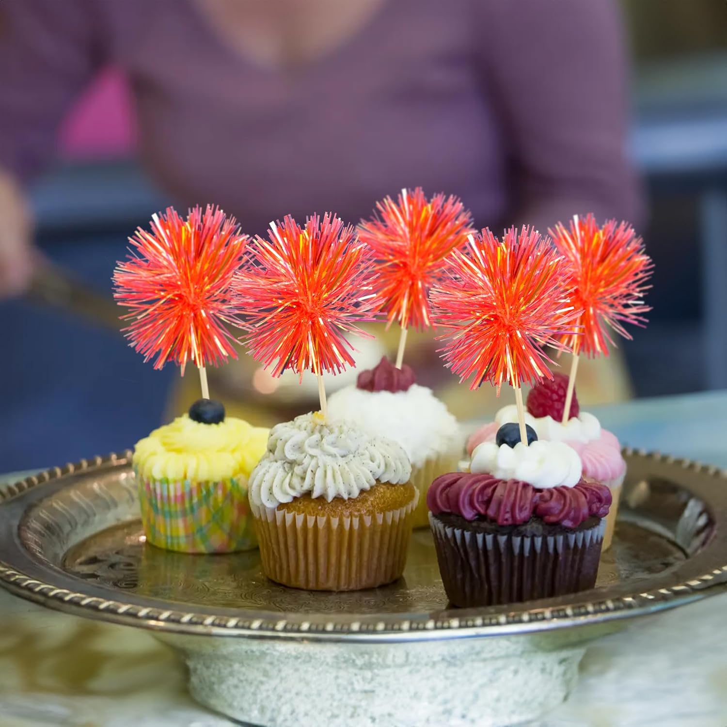 - -Premium Material: These Foil Firework Cupcake Toppers are made of high quality foil and food-grade toothpick, very safe to put them on cakes, cupcakes, ice cream, fruits, pie, dessert, cheese or any dish and food appetizer you want to decorate.