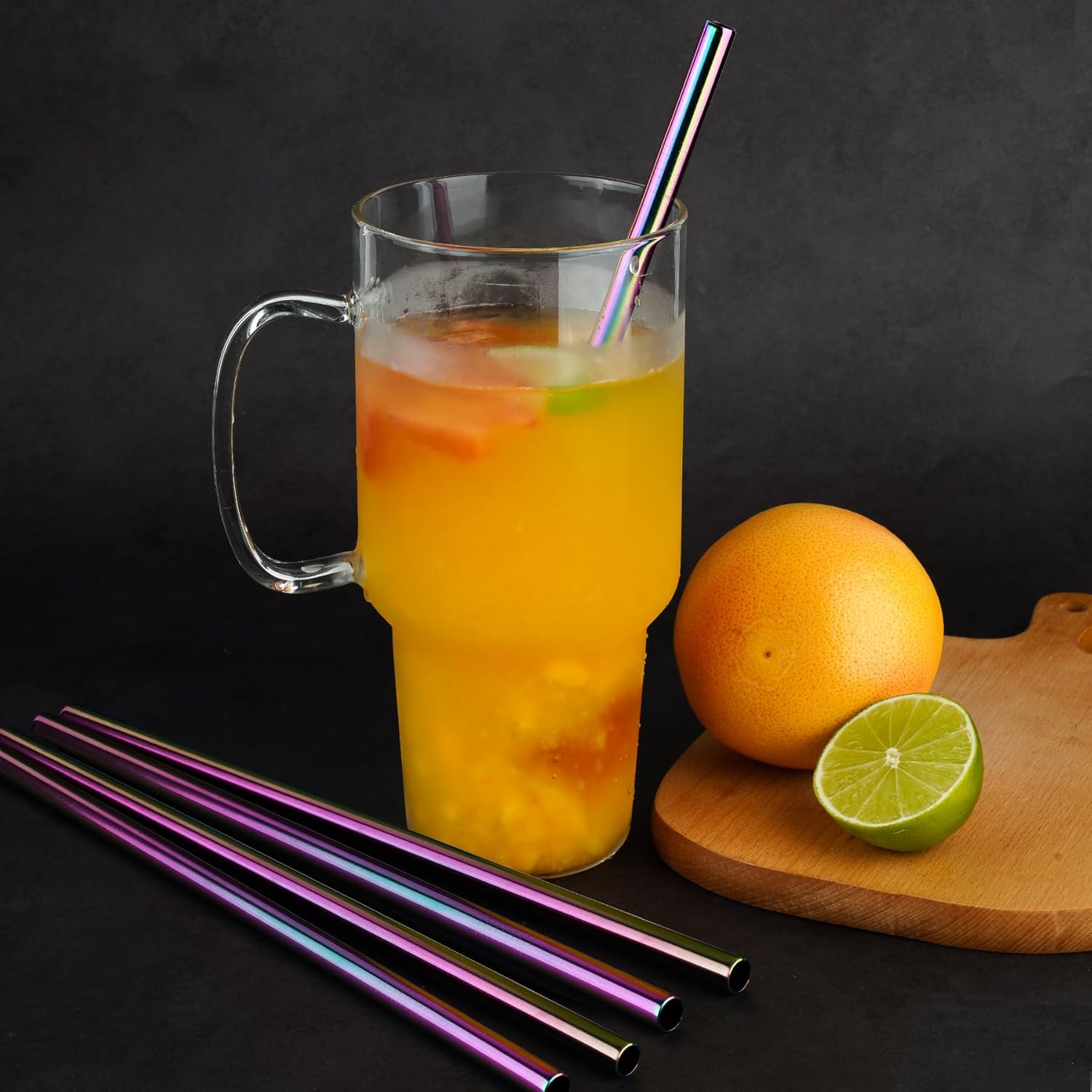 Tomorotec 8PCS Stainless Steel Straws for Stanley Tumbler 40oz, 12" Metal Straws for Stanley Cup with Brush, Reusable Drinking Straws for Smoothies, Milkshakes, Dishwasher Safe & BPA-Free (Iridescent)