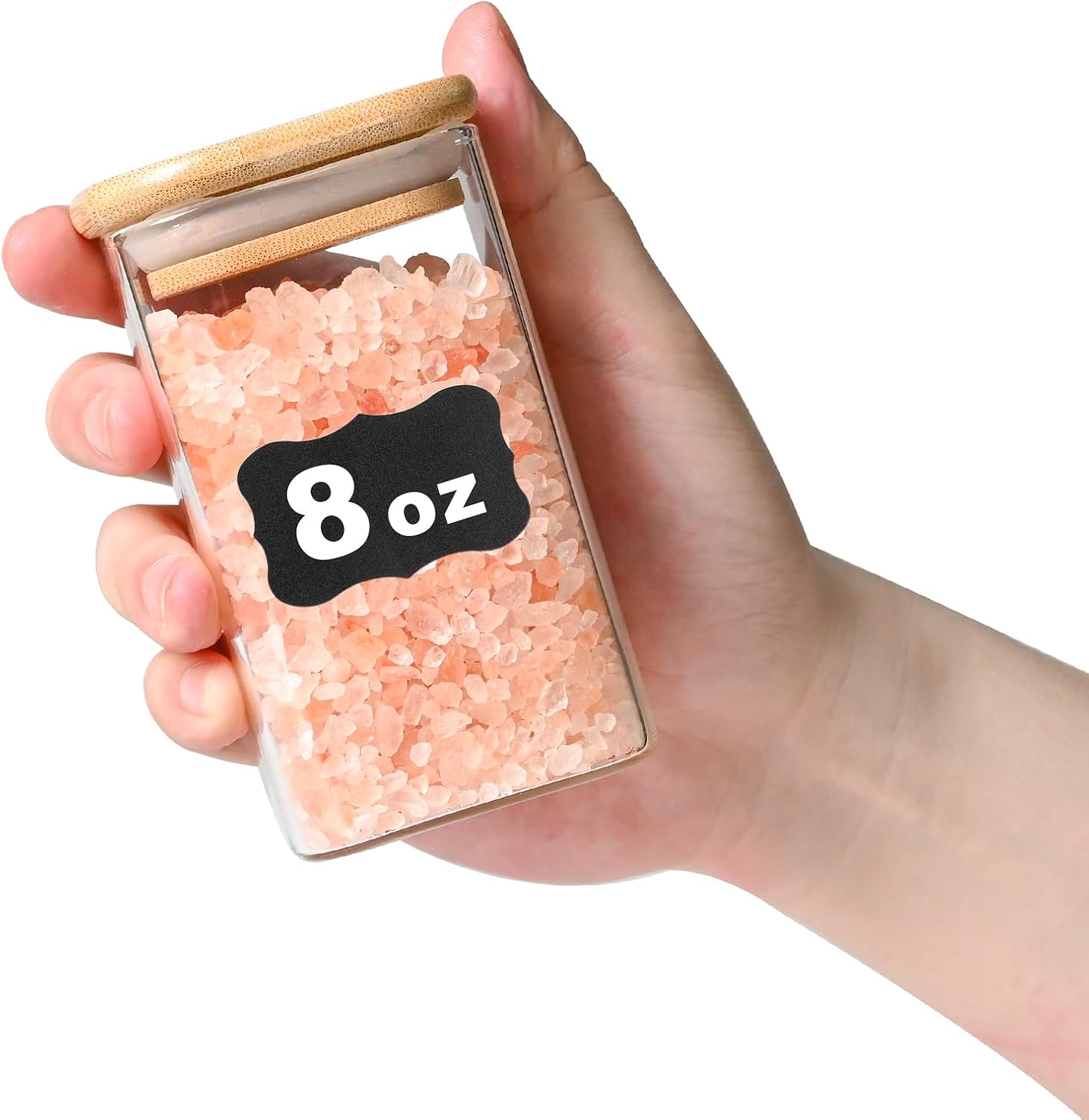 - [Product details] Square glass storage jar height:4.17in. Diameter:2.36in. Capacity:8oz(227ml). Package contains: 12pcs. 12 pieces glass pantry storage containers with same volume meet you various storage need.