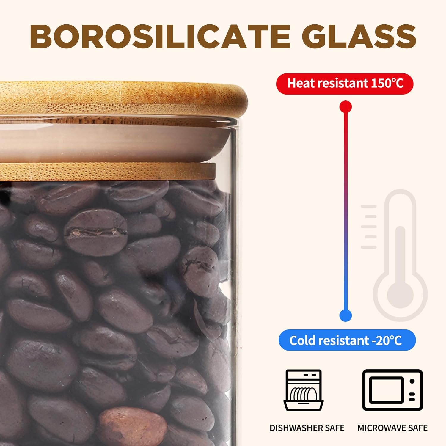 - [Premium quality and safety assurance] Our glass containers with bamboo lids are made of premium quality and borosilicate glass, glass pantry storage containers can withstand the harsh tests of daily use. The bamboo lid provides an airtight seal, ensuring the freshness of stored food. Our glass food storage jars are BPA Free, Phthalate Free, PVC Free, Lead Free, They are healthy and reliable choice for your kitchen.