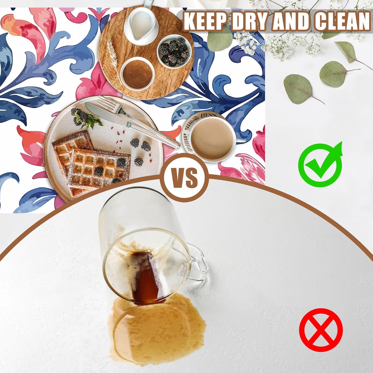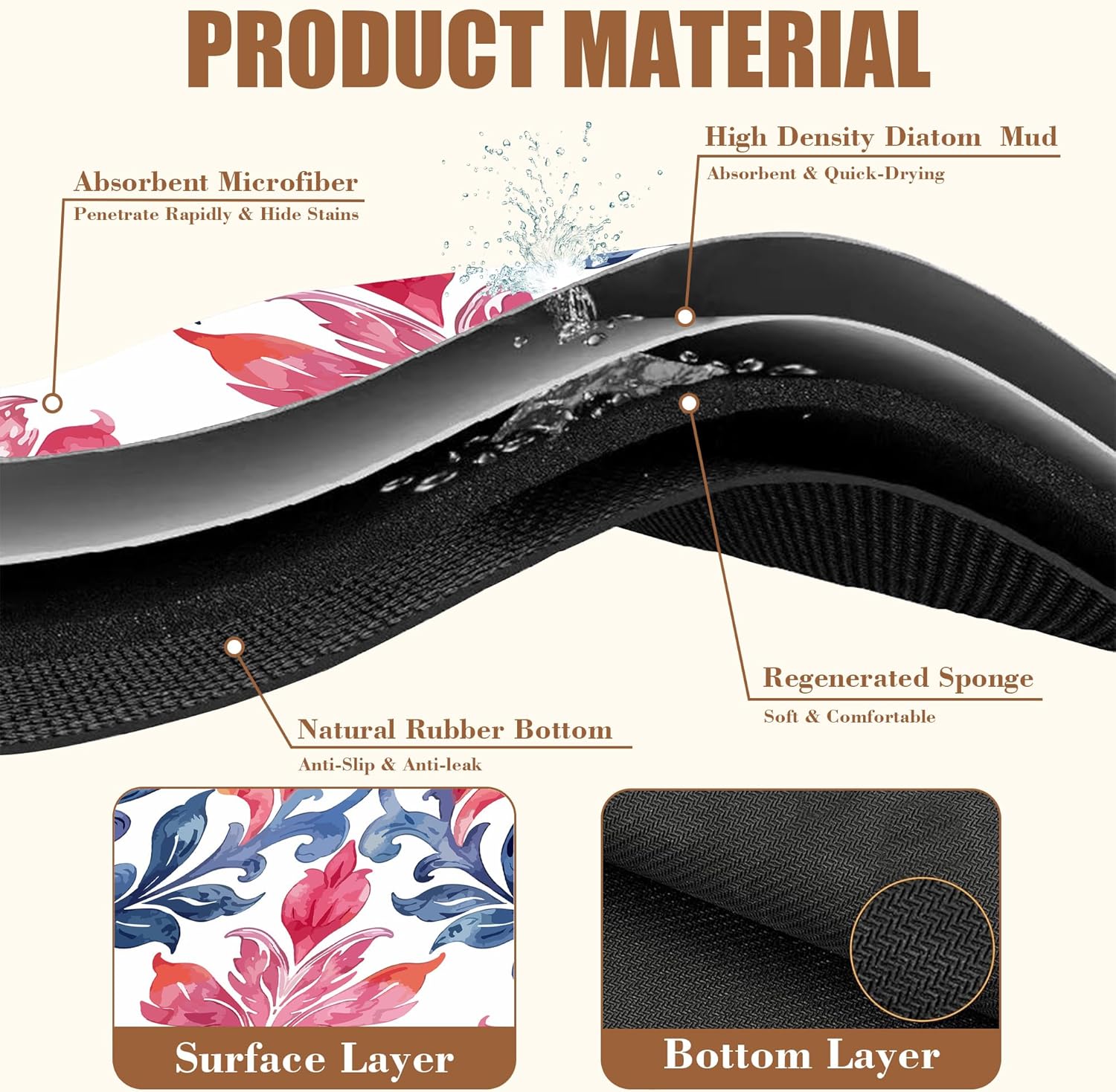 Blue and Pink Damask Coffee Mat Absorbent Dish Drying Mat for Kitchen Counter Hide Stain Coffee Bar Accessories with Rubber Backed Fit Under Espresso Machine, 11.8 x 19.7 Inch