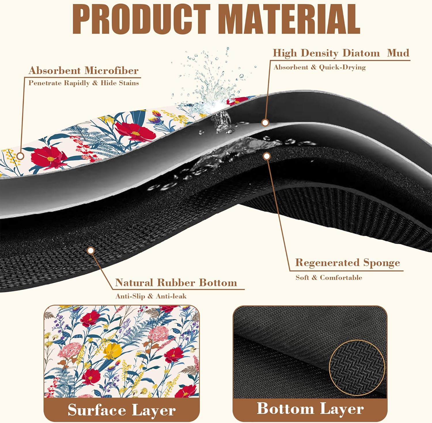 Dish Drying Mat Spring Flowers Coffee Bar Mat for Countertop Botanical Coffee Mat Absorbent Rubber Backed Hide Stain Dish Drainer Rack Mat Coffee Maker Coffee Pot Dining Room Decor 15.7 x 23.6 Inch