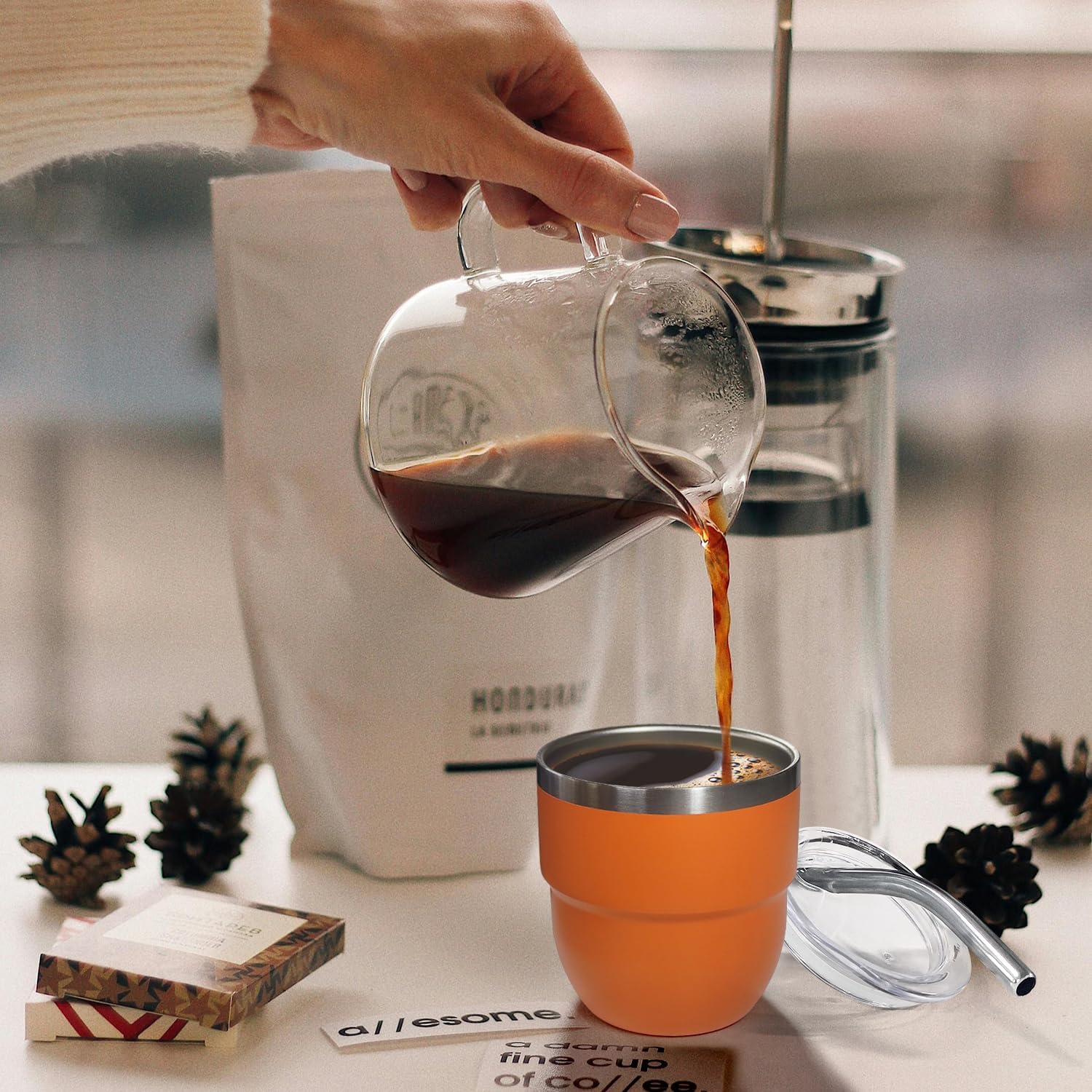 4oz Stackable Cup, Vacuum Insulated Espresso Cup Set of 2, Espresso Shot Glass for Coffee, Double Wall Stainless Steel Mini Tumbler Shot Glasses with Straw and Lid (A-orange2P, 4oz)