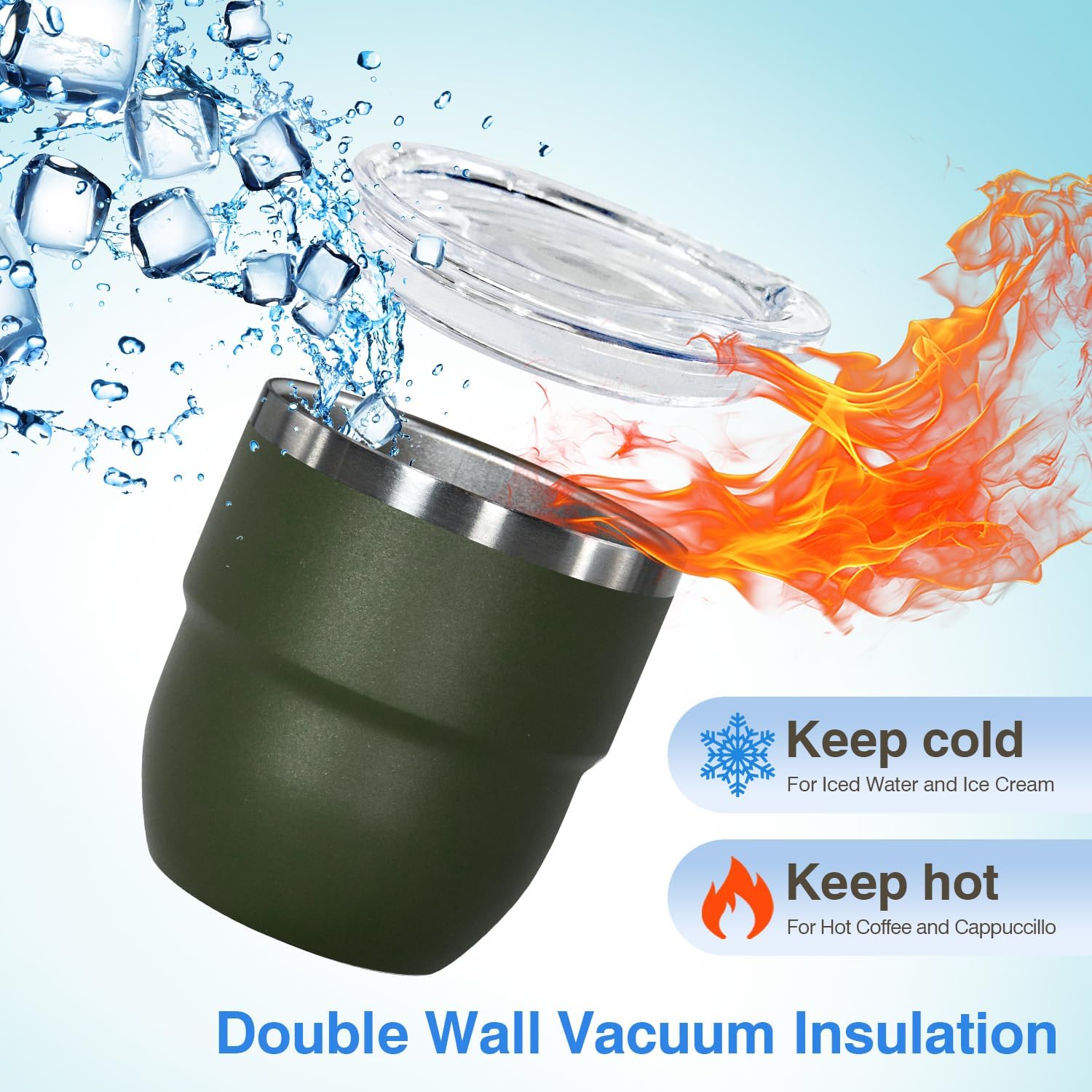 - DOUBLE WALL STAINLESS STEEL: Our espresso cups are made from double wall 18/8 stainless steel, vacuum insulated. Compared to ceramic lining, stainless steel lining are more durable, anti-scald, odourless, not break easily, and better at retaining hot or cold. Whether it's a hot coffee or an iced coke, this small cup is up to the task!
