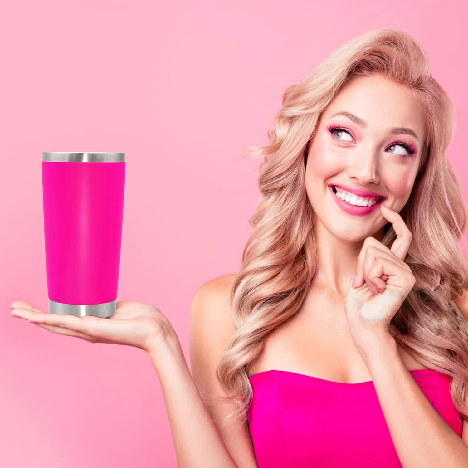 20 oz Tumbler Coffee Tavel Tumblers Bulk with Lid Stainless Steel Double Wall Vacuum Insulated Mug Powder Coated Cups fit Car Cupholder for Hot and Cold - Hot Pink, 8Pack