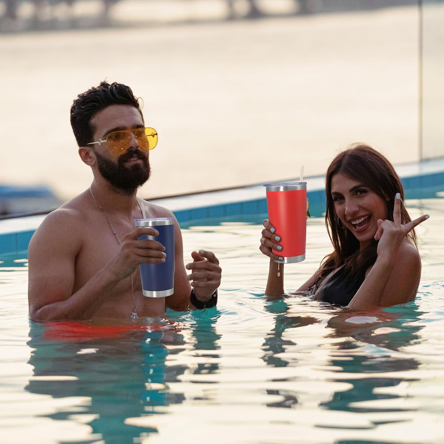 - POWDER COATED & EASY TO HOLD - The outside of the insulated travel tumblers is non-toxic frosted powder coating. There are 12 colors of powder coating, there is always a style you like. The frosted texture of the tumblers’ outer wall makes it easy for you to hold and the outer wall of the tumbler will never hang water droplets. In addition, Our insulated tumblers are also suitable for laser engraving, vinyl decals or color painting