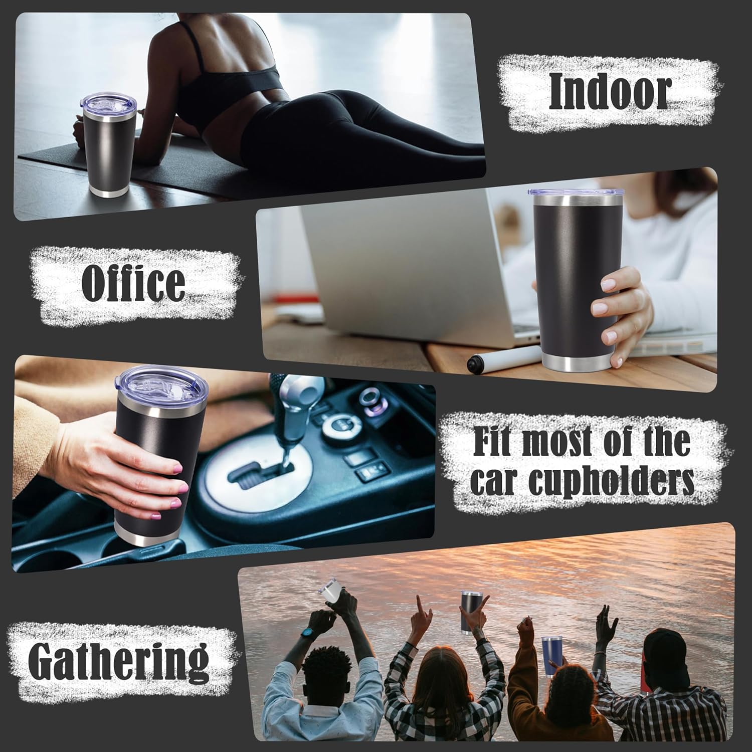 - POWDER COATED & EASY TO HOLD - The outside of the insulated travel tumblers is non-toxic frosted powder coating. There are 12 colors of powder coating, there is always a style you like. The frosted texture of the tumblers’ outer wall makes it easy for you to hold and the outer wall of the tumbler will never hang water droplets. In addition, Our insulated tumblers are also suitable for laser engraving, vinyl decals or color painting