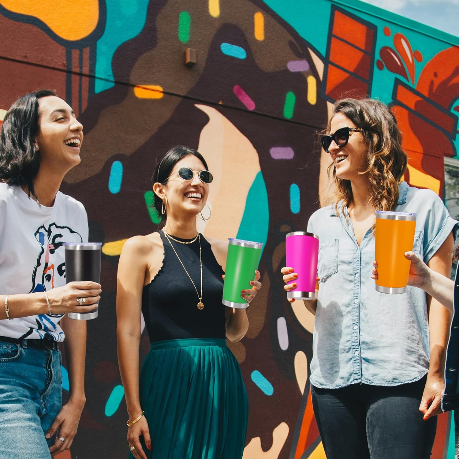 - POWDER COATED & EASY TO HOLD - The outside of the insulated travel tumblers is non-toxic frosted powder coating. There are 12 colors of powder coating, there is always a style you like. The frosted texture of the tumblers’ outer wall makes it easy for you to hold and the outer wall of the tumbler will never hang water droplets. In addition, Our insulated tumblers are also suitable for laser engraving, vinyl decals or color painting