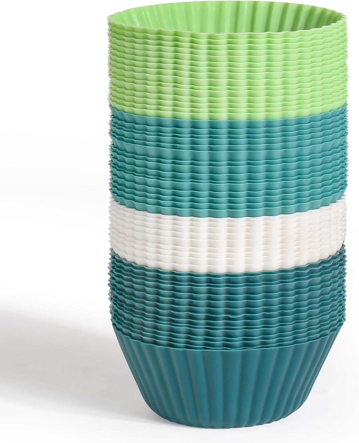 54 Pack Silicone Muffin Cups, Selizo Silicone Cupcake Baking Cups Reusable Muffin Liners Cupcake Wrapper Cups Holders for Muffins, Cupcakes, and Candies (Navy, Gray Blue, Green, White)