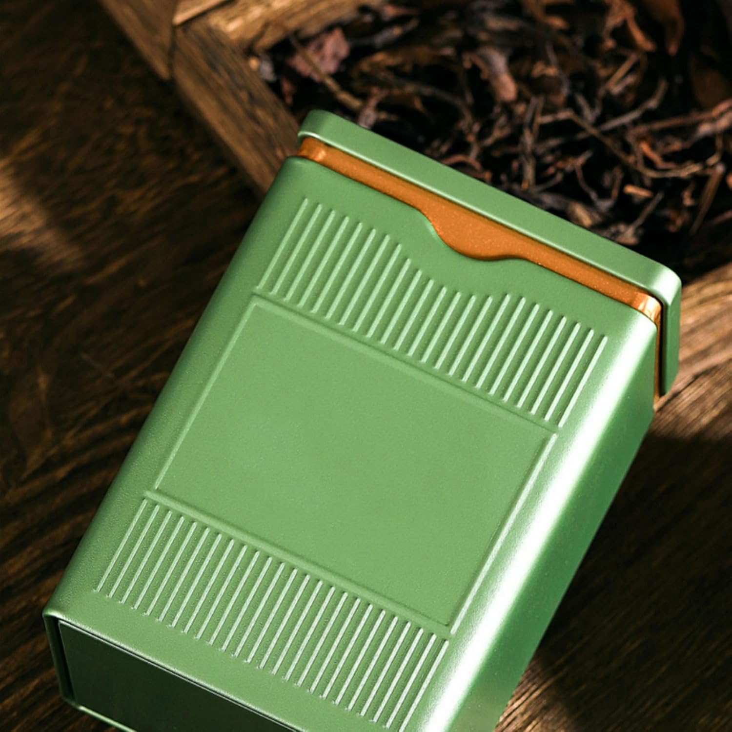 HAN SHENG Square Airtight Tea Tins - Green, Food Storage Containers for Loose Tea, Coffee, Spices (5.9"x3.4"x2.8")