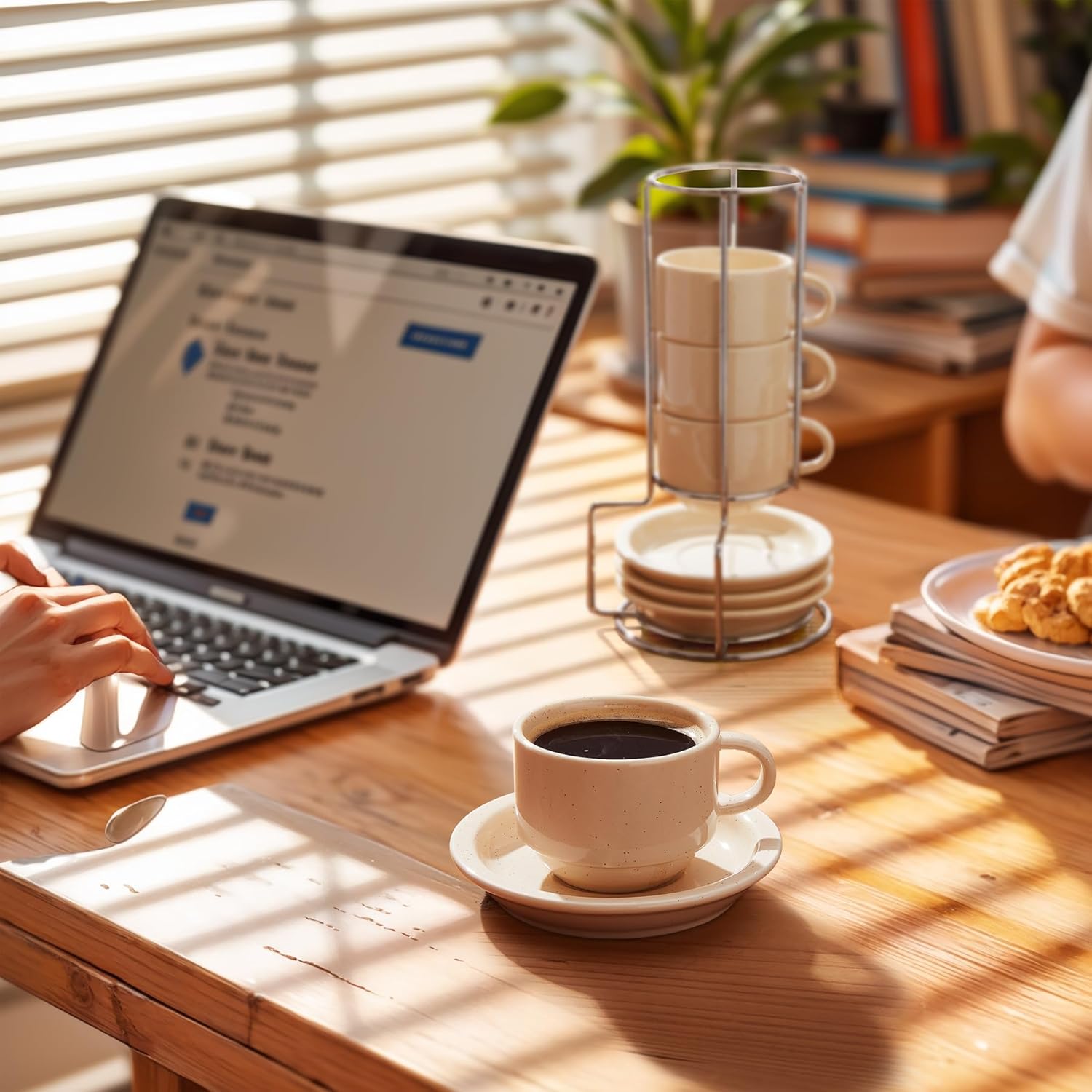 - SPILL-FREE ENJOYMENT: Innovative non-slip saucers ensure secure sipping without spills. Enjoy worry-free coffee time with family and friends.