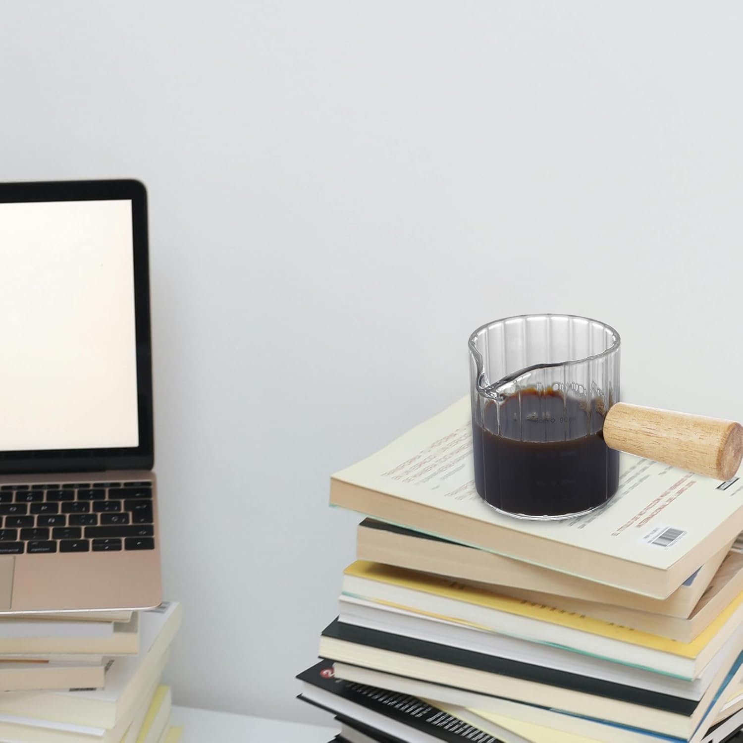 Espresso Measuring Cup 3 Oz, Espresso Glass Cups with Wood Handle, Milk Frothing Cup, Espresso Cup for Coffee, Milk, Tea or Maple Syrup Serving