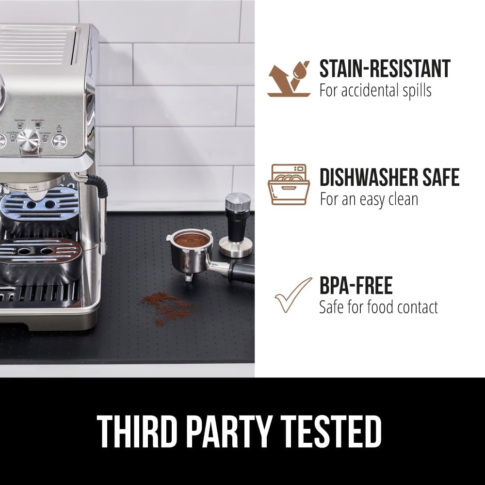 GORILLA GRIP Silicone Coffee Mat, 15x23, Espresso Drink Bar Station Accessories, Use Under Machine, Waterproof Heat Resistant Multi-Use Dish Drying Mats, Stays in Place, Kitchen Home Decor, Black