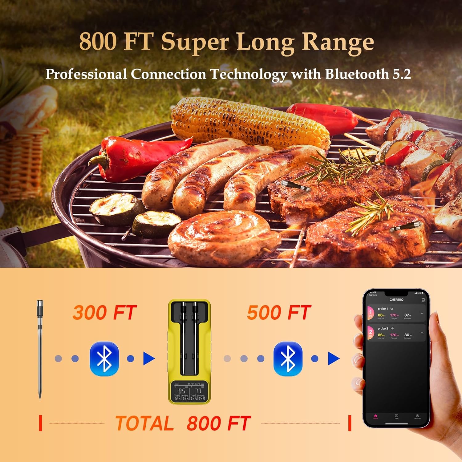 800FT Smart Wireless Meat Thermometer with Digital Meat Probe, Bluetooth Meat Thermometer with App Host Control for Barbecue, Outdoor Grilling, Oven & Smoker (Two*Probe-04)