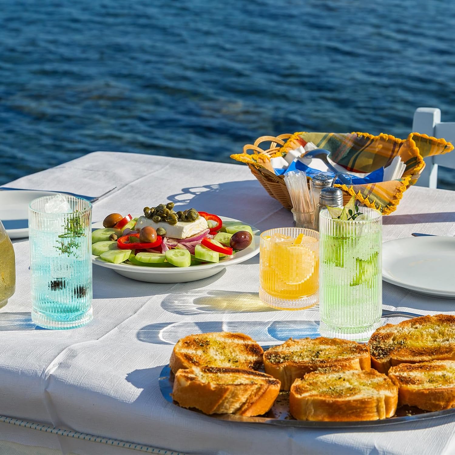 - Sunny Picnic Charm:Imagine a sunny weekend picnic. You spread out a colorful blanket and unpack a basket filled with delicious treats. As you pour a refreshing lemonade into a POLIDREAM ribbed glass, the sunlight dances through the glas, creating a beautiful play of light. These drinking glasses add a touch of elegance to your outdoor adventure. Whether you're sipping on a cool beverage or enjoying a glass of wine as the sun sets, POLIDREAM clear glass are the perfect companion for your memorable moments