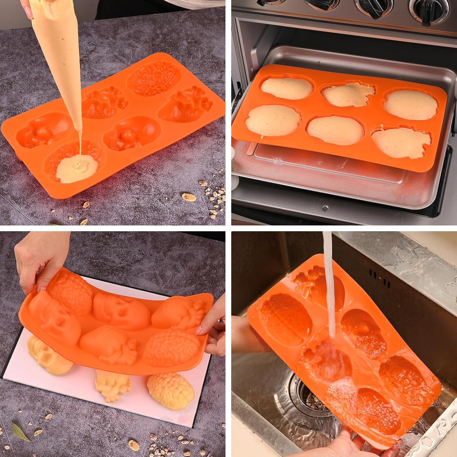 - Designs: Orange and purple 2 pieces of halloween cake molds in 6 Cavities 3 human organ shapes, with clear details which make your works vivid and lifelike, can impress your guests with at halloween party!