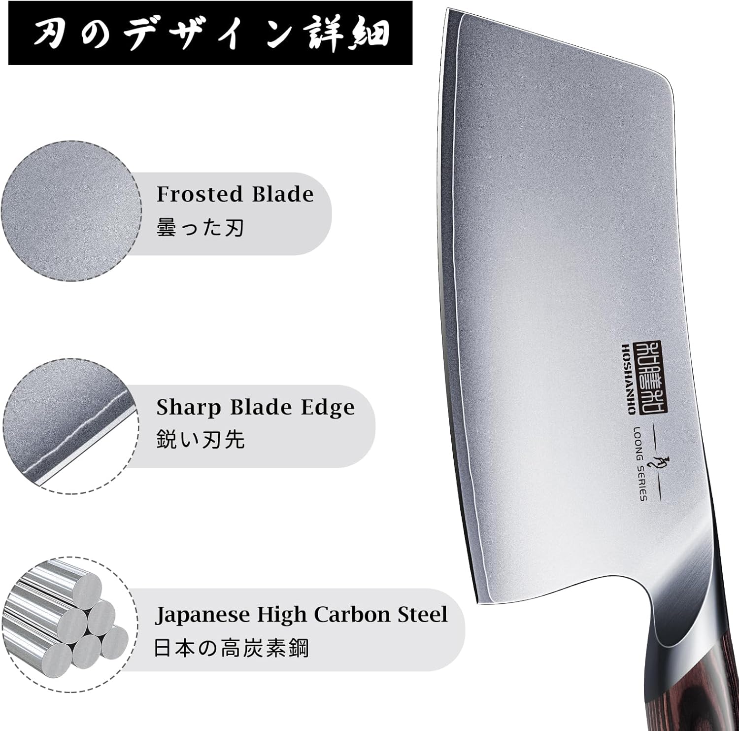 - 【Excellent Sharp Edge】The sharp blade with 15° on each side allows for clean and precise cutting, and the hardness is as high as 58+2 HRC for maximum strength, flexibility and blade durability. The Chinese chef's knife has been repeatedly polished and polished to present a smooth and delicate surface, which can also effectively reduce the adhesion of food residues and facilitate cleaning and maintenance.