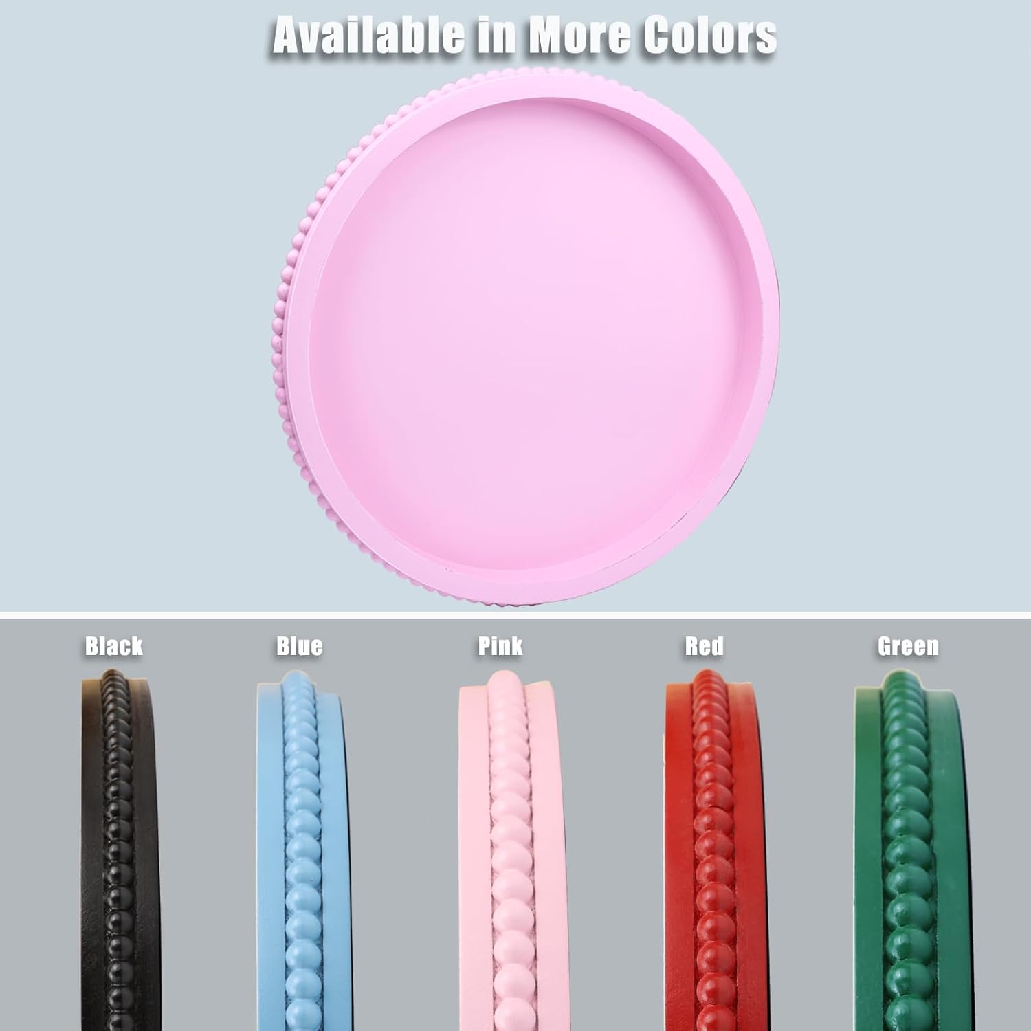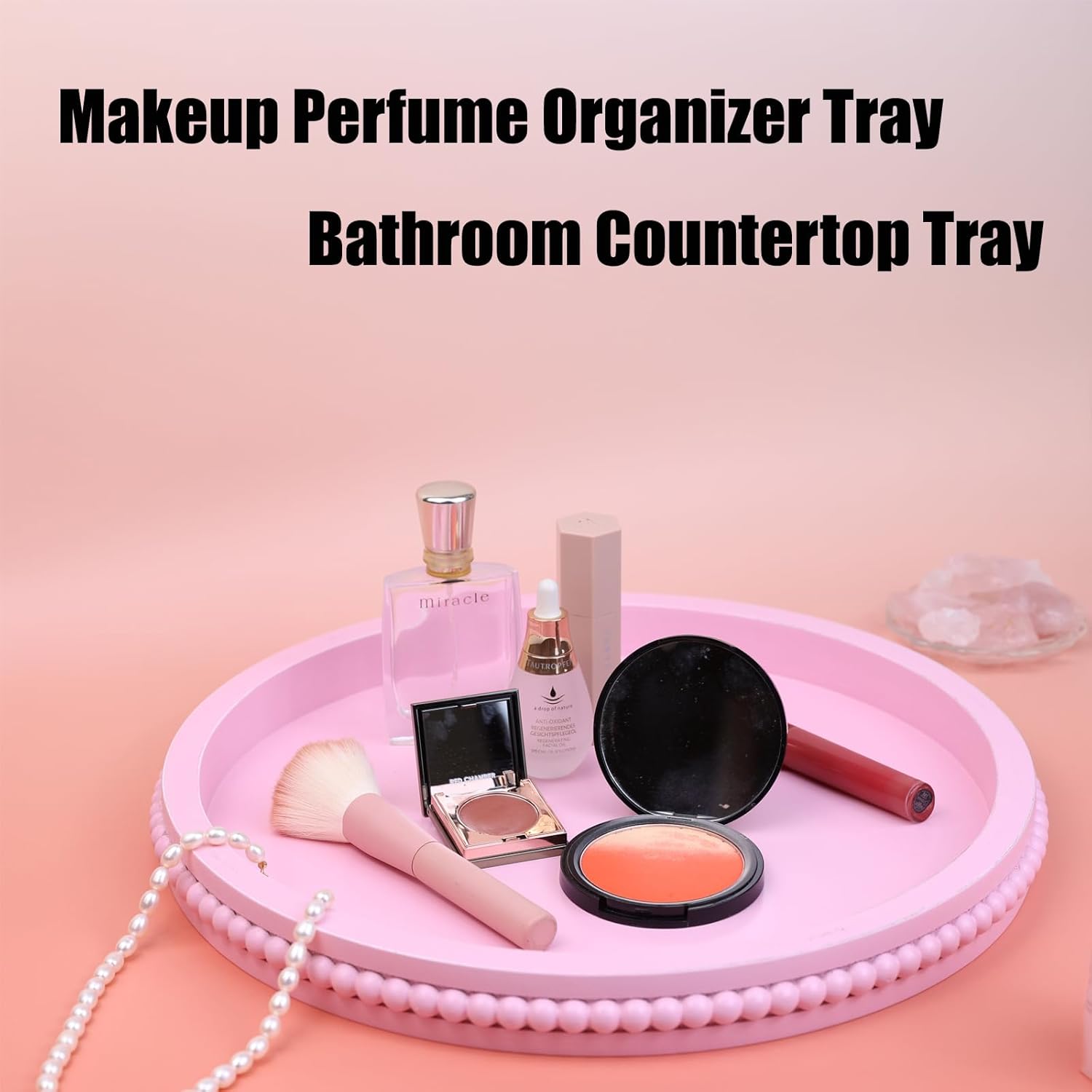 Pink Round Wood Decorative Ottoman Tray for Coffee Table Kitchen Counter, Living Room, Handcrafted Wooden Serving Tray for Table Centerpiece