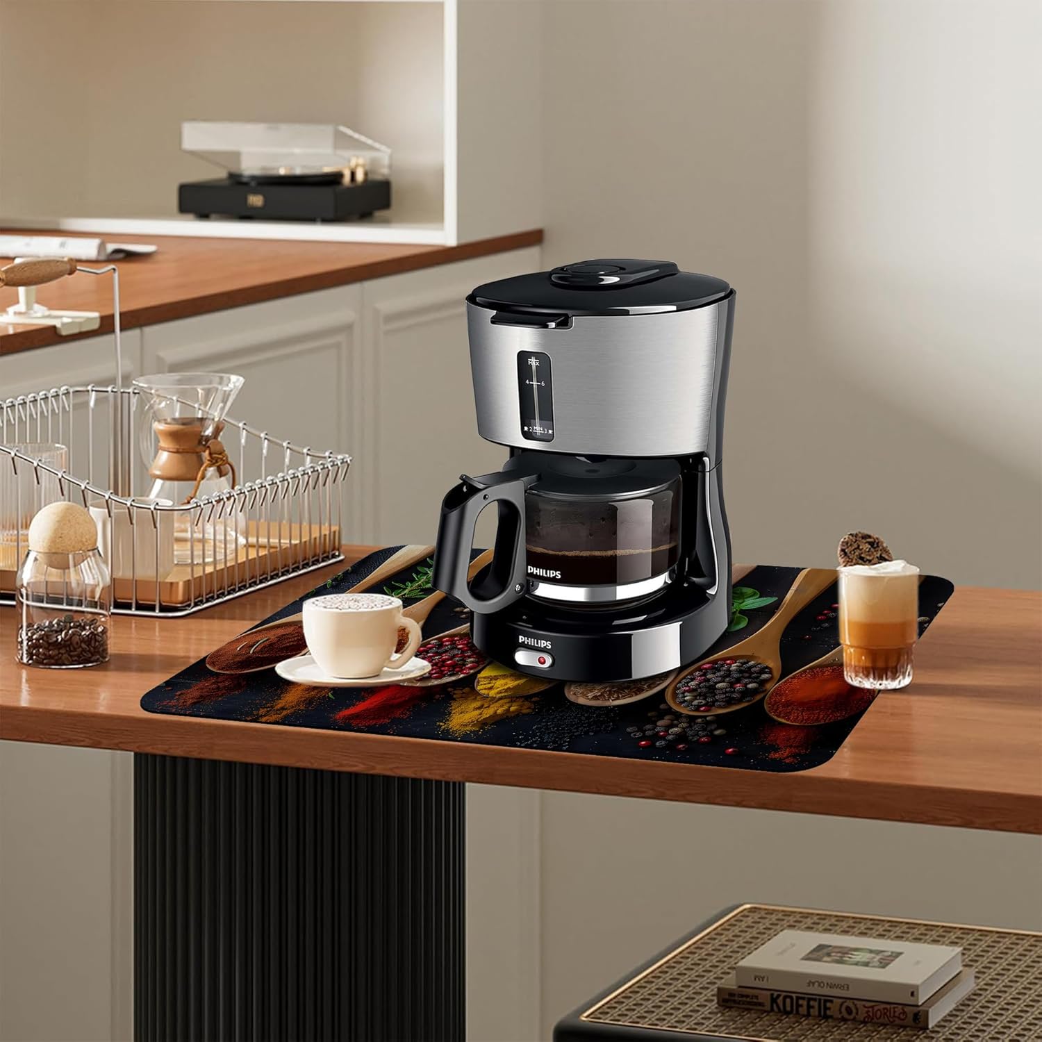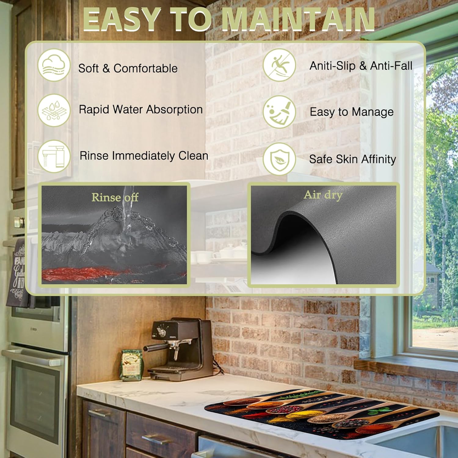 Dish Drying Mat Colorful Spices Herbs Kitchen Mat 16"x24" Bsorbent Coffee Maker Mat for Dishes,Utensils Coffee Maker Pots and Pans Easy Clean Dish Slip Resistant Pad