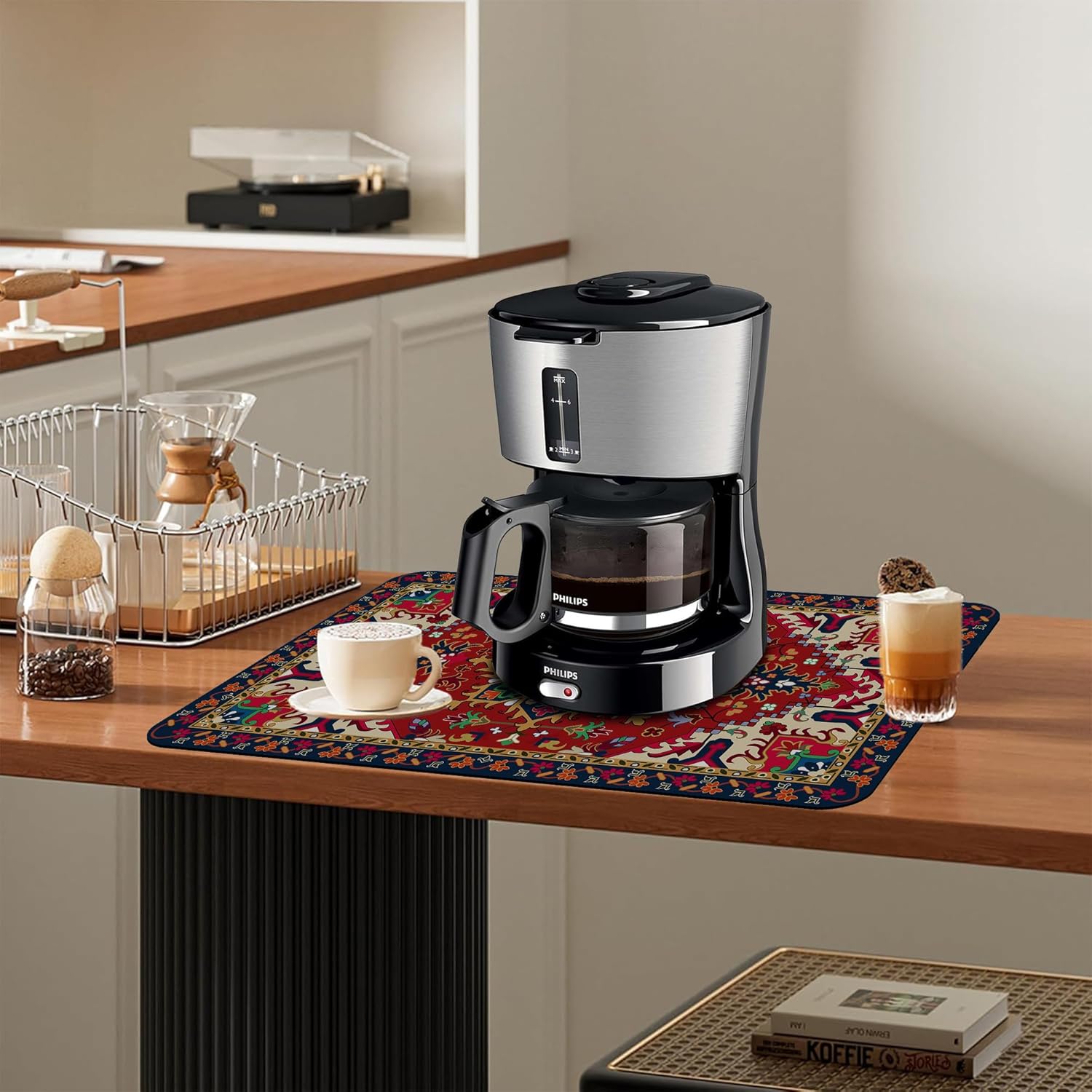 Dish Drying Mat Bohemia Tribal Carpet Texture Kitchen Mat 16"x24" Bsorbent Coffee Maker Mat for Dishes,Utensils Coffee Maker Pots and Pans Easy Clean Dish Slip Resistant Pad