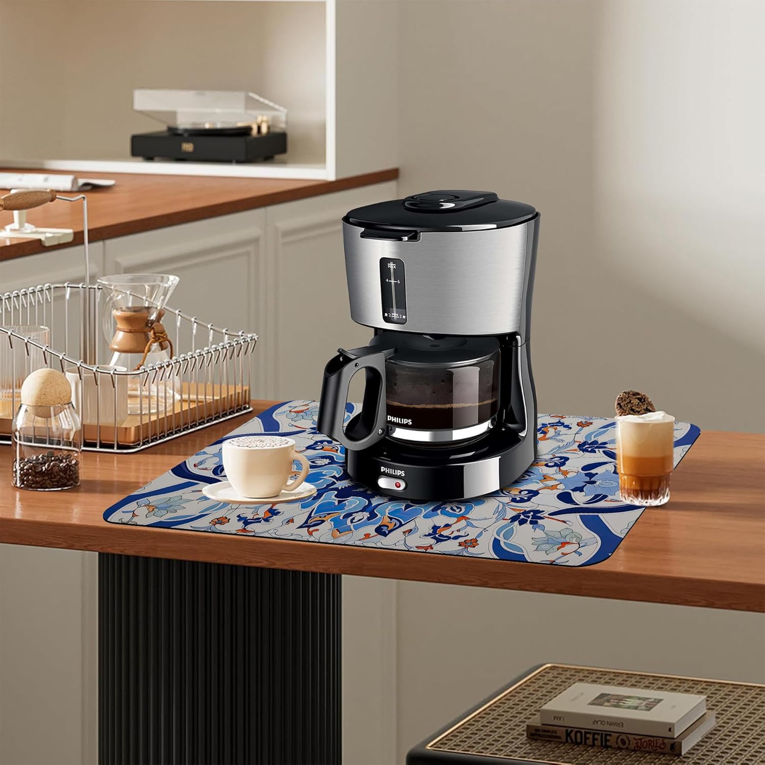 Dish Drying Mat Mandala Blue Floral Kitchen Mat 12"x19" Bsorbent Coffee Maker Mat for Dishes,Utensils Coffee Maker Pots and Pans Easy Clean Dish Slip Resistant Pad