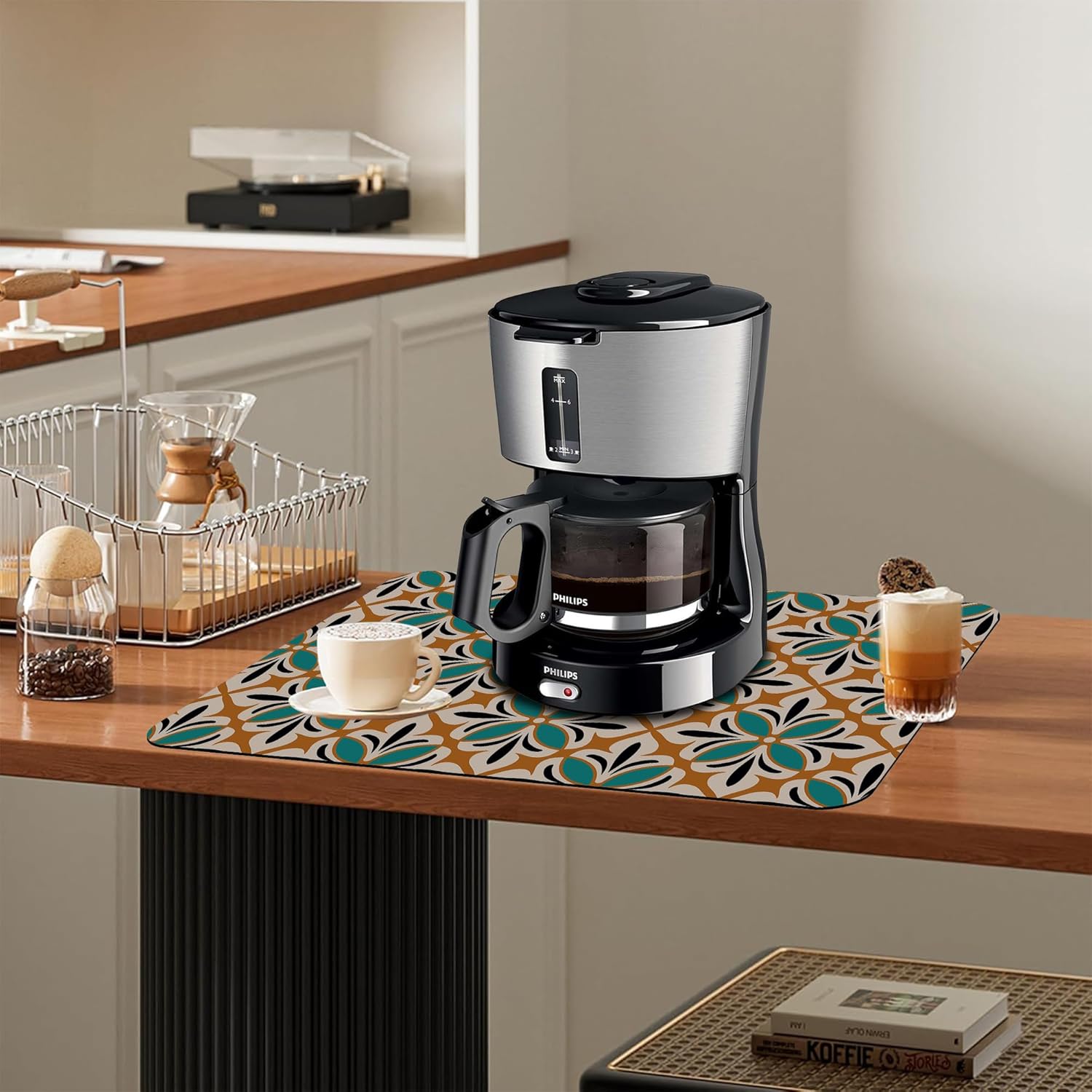Dish Drying Mat Abstract Floral Kitchen Mat 12"x19" Bsorbent Coffee Maker Mat for Dishes,Utensils Coffee Maker Pots and Pans Easy Clean Dish Slip Resistant Pad