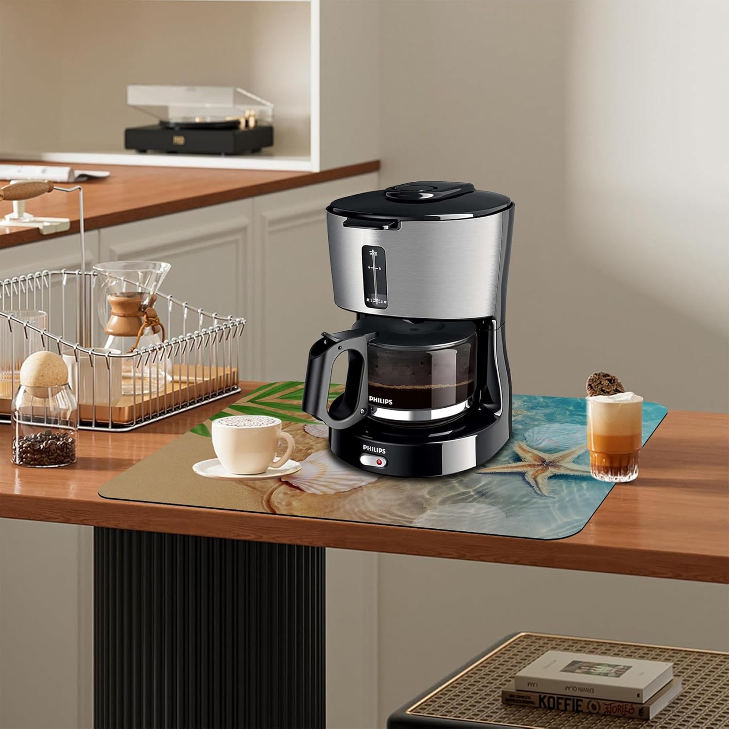 Dish Drying Mat Summer Beach Starfish Seashell Kitchen Mat 12"x19" Bsorbent Coffee Maker Mat for Dishes,Utensils Coffee Maker Pots and Pans Easy Clean Dish Slip Resistant Pad