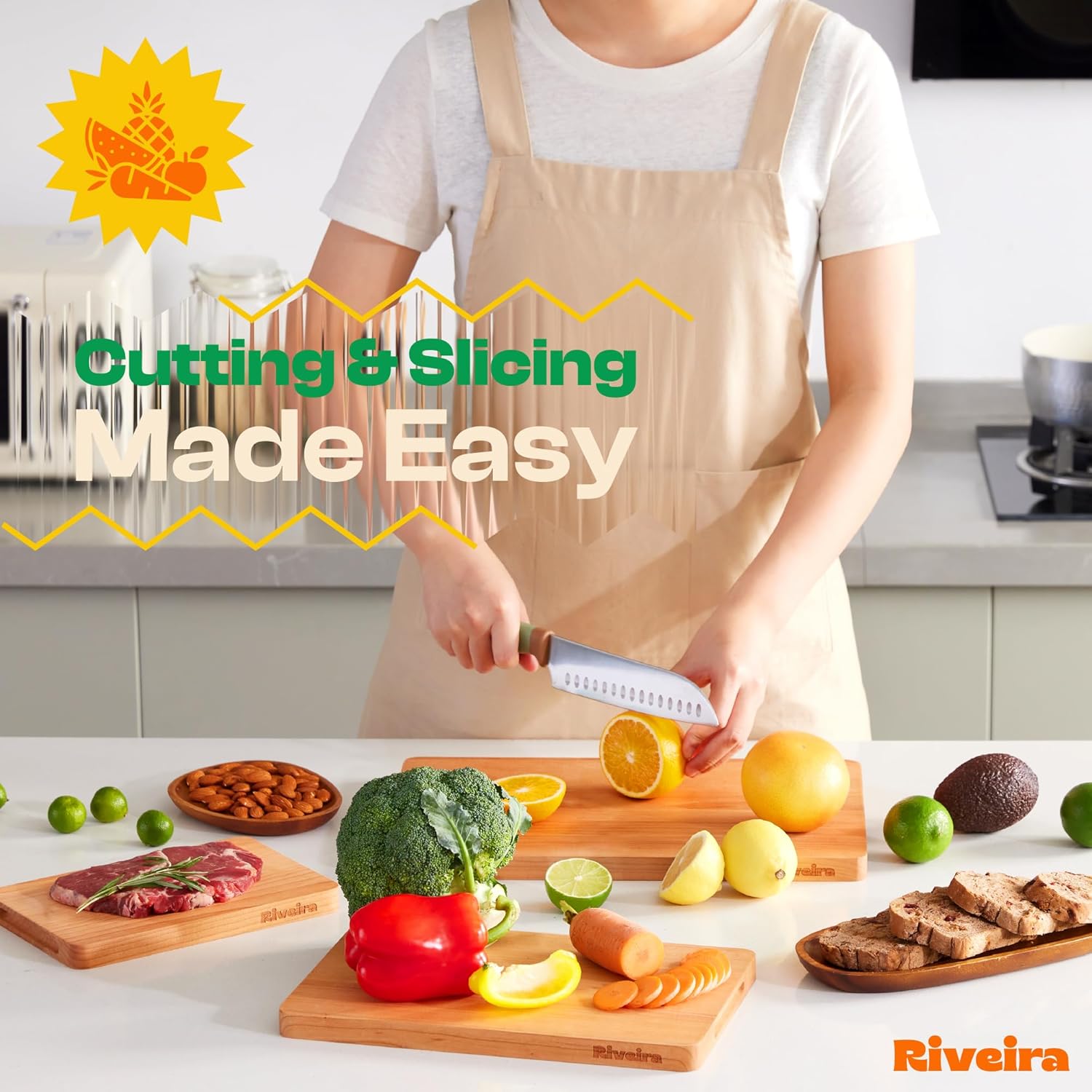 - Handle Everything with Confidence — The built-in handle holds of the cherry cutting boards are designed for handling everything with confidence and easy maneuvering. Pre-oiled and ready for immediate bewilderment, this wooden chopping board is not just convenient for the kitchen mess but has a unique design to maintain, ensuring a performance that is both comfortable and clean for chopping boards for kitchen. Riviera non toxic cutting boards for kitchen will be perfect in your kitchen.