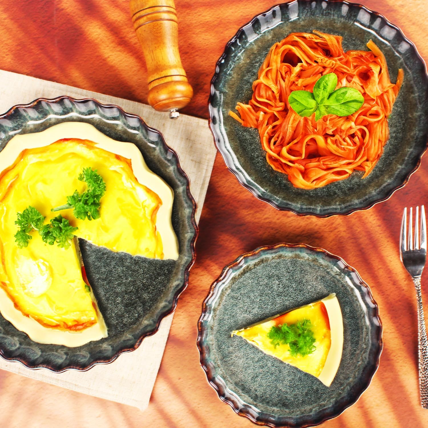 - SIZE AND CAPACITY - These 9.6"W x 1.6"D inch round quiche baking dishes, each with a capacity of 27 Ouncest(800 ML), are perfect for a range of dishes, including meat pies, pizza, cheesecake, dessert pies, quiche, casseroles, and baked macaroni. Ideal for holiday pie-making, they are also versatile for baking, serving, and daily use.