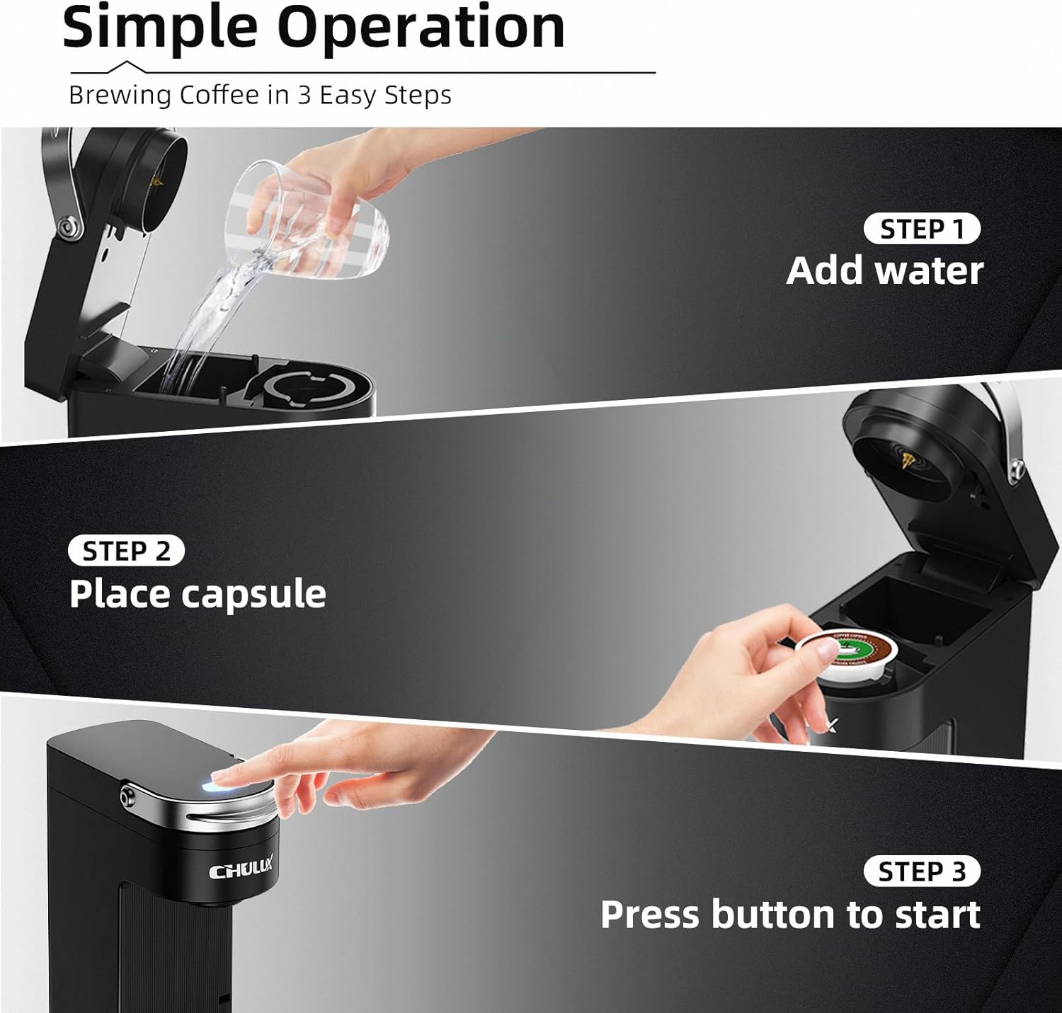 - One Touch Operation: Simple one-touch button makes it easy to brew your favorite coffee. Just preparing capsule, add water, put the lid on and press button then the coffee brew in a few mins. If you are accustomed to forgetting to unplug, the single serve coffee brewer auto shut off to keep your safety