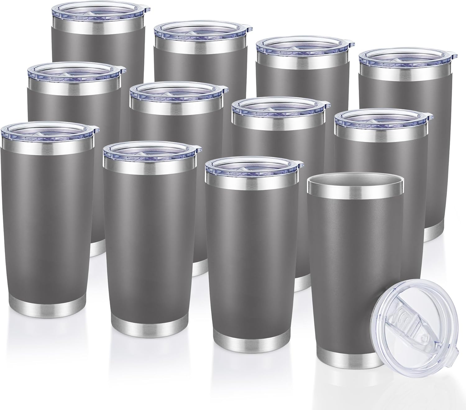 20 oz Tumblers Bulk Stainless Steel Tumbler with Lid Double Wall Vacuum Insulated Coffee Mug 20oz Powder Coated Cup for Hot and Cold Drinks, Gray, 12 pack
